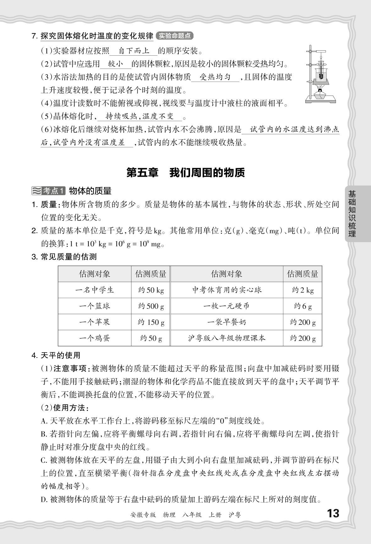 2023秋上册八年级物理沪粤版 期末过课本·基础知识梳理 第五章 我们周围的物质
