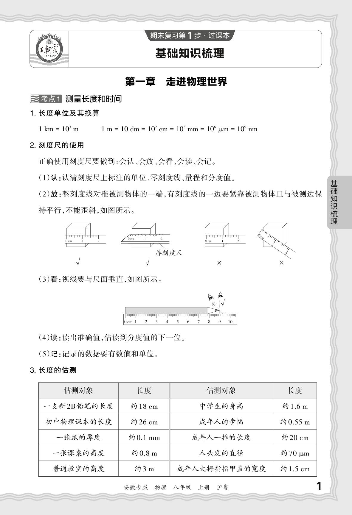 2023秋上册八年级物理沪粤版 期末过课本·基础知识梳理 第一章 走进物理世界