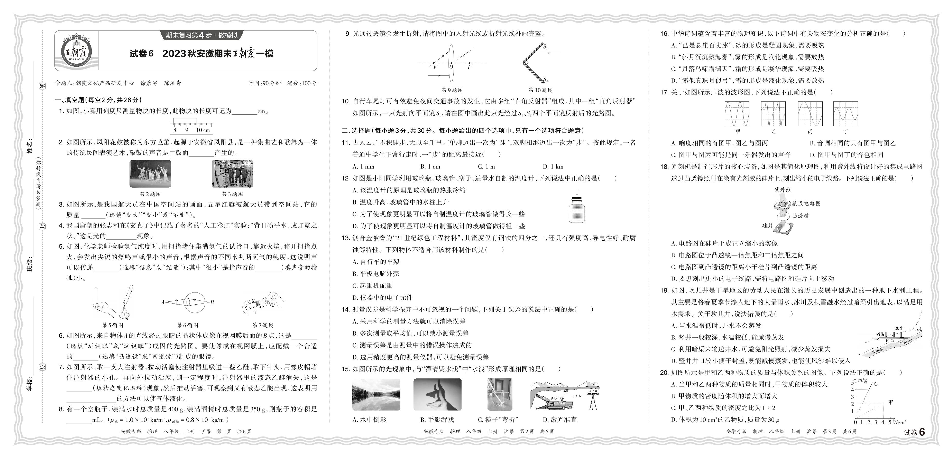 2023秋上册八年级物理沪粤版 安徽期末王朝霞一模