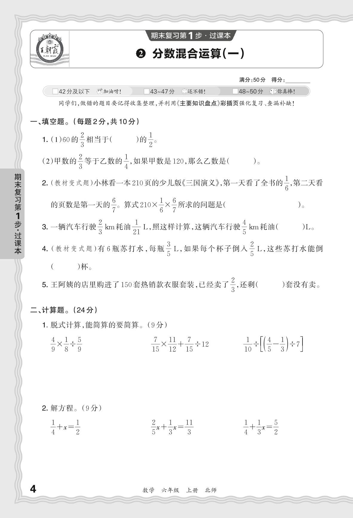 2023秋上册六年级数学北师版 期末过课本QMA版·分数混合运算(一)【2】