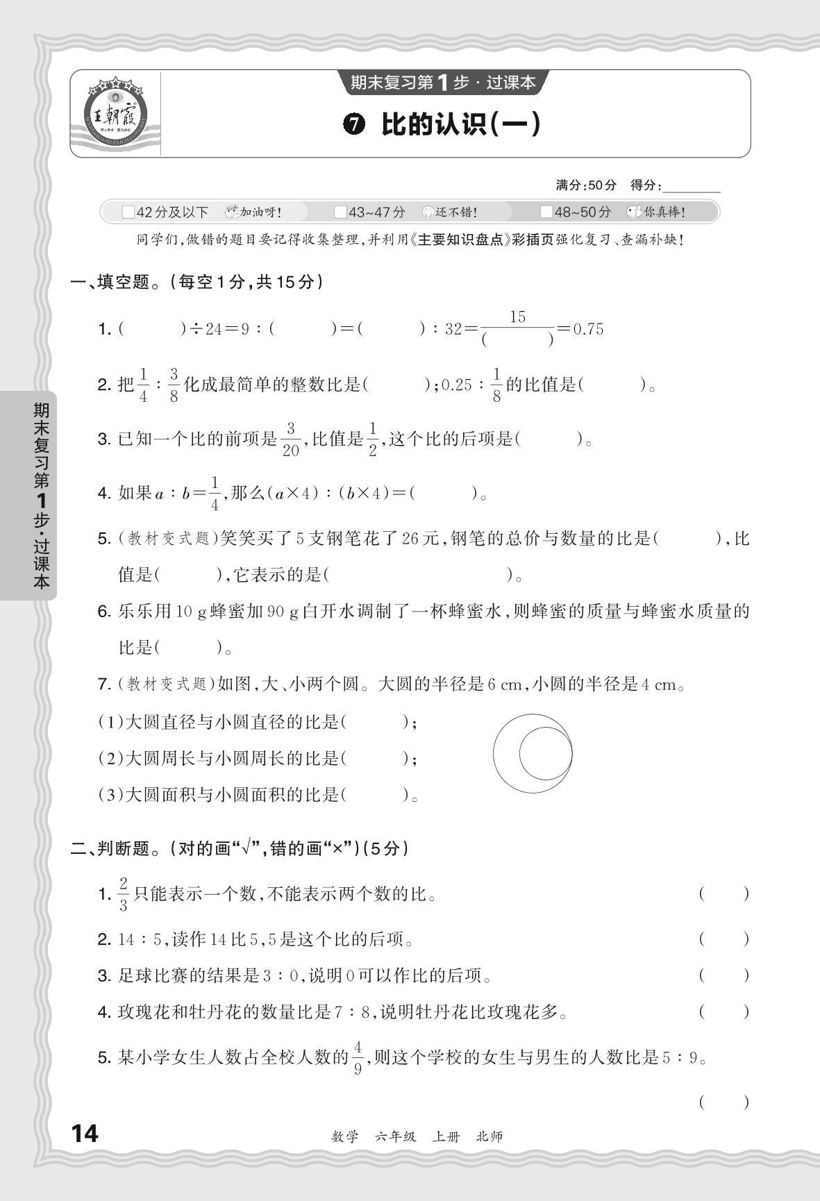 2023秋上册六年级数学北师版 期末过课本QMA版·比的认识(一)【7】