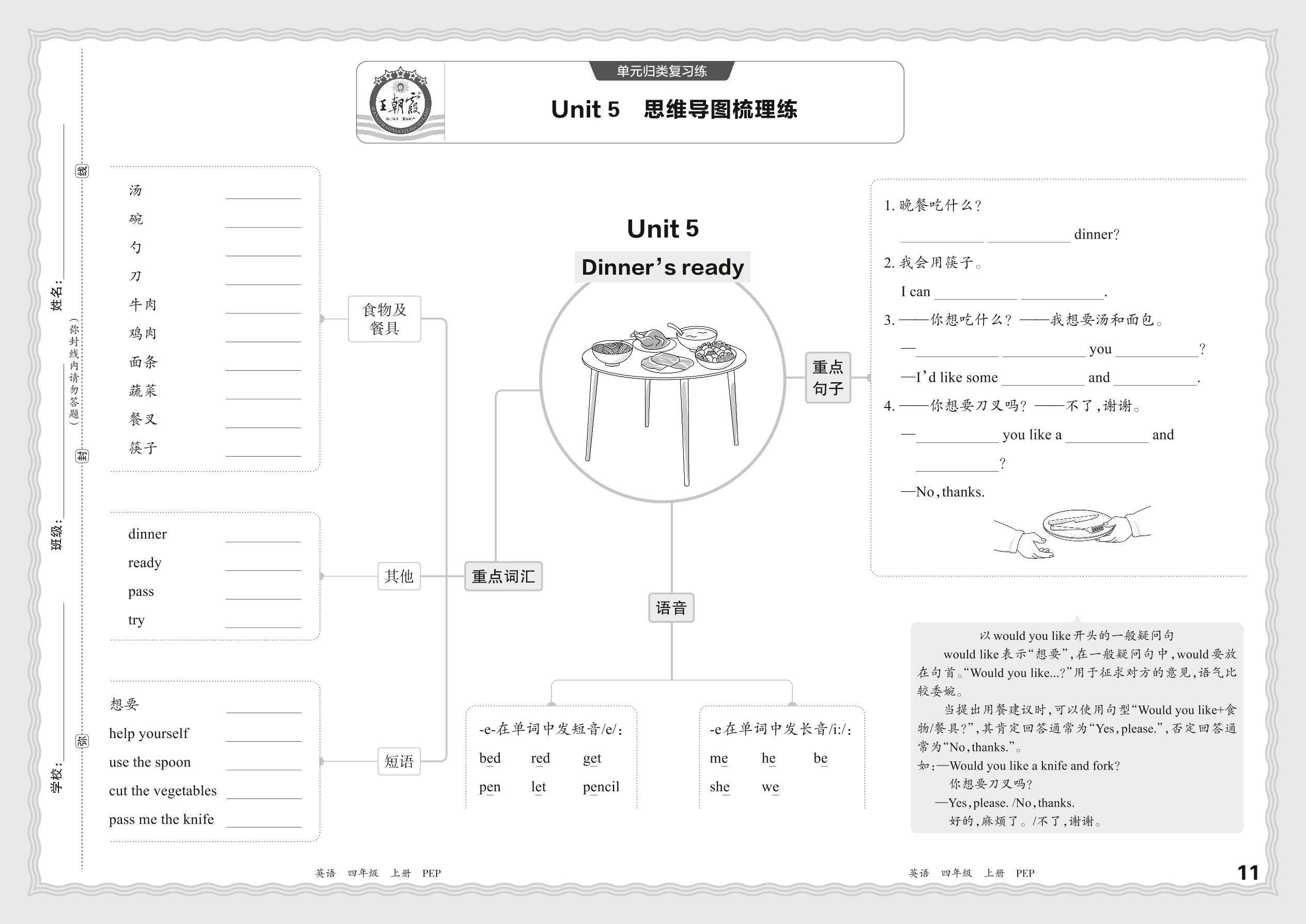 2023秋上册四年级英语人教PEP版 期末过课本·单元归类复习练—Unit 5