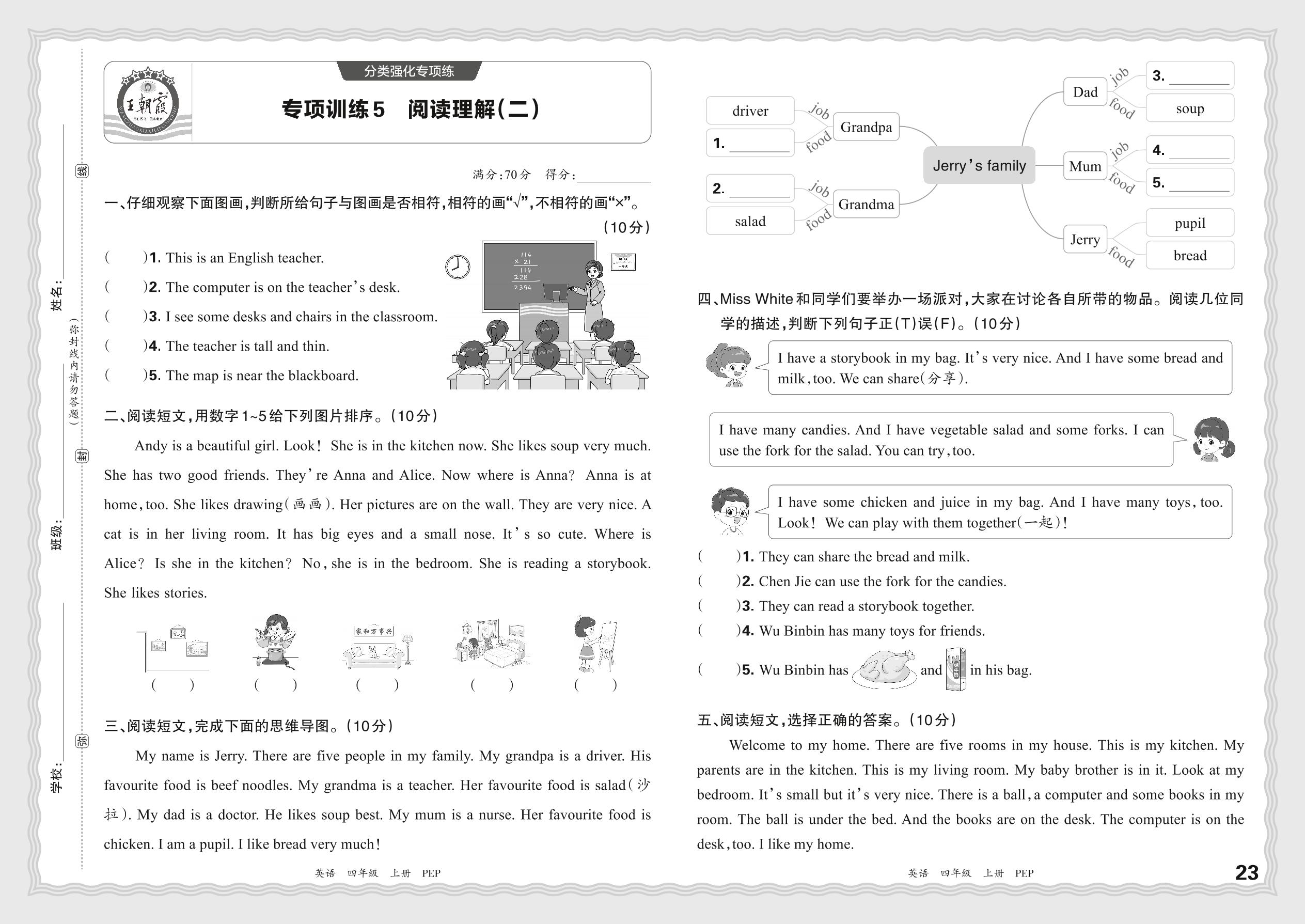 2023秋上册四年级英语人教PEP版 期末专项·阅读理解(二)【5】