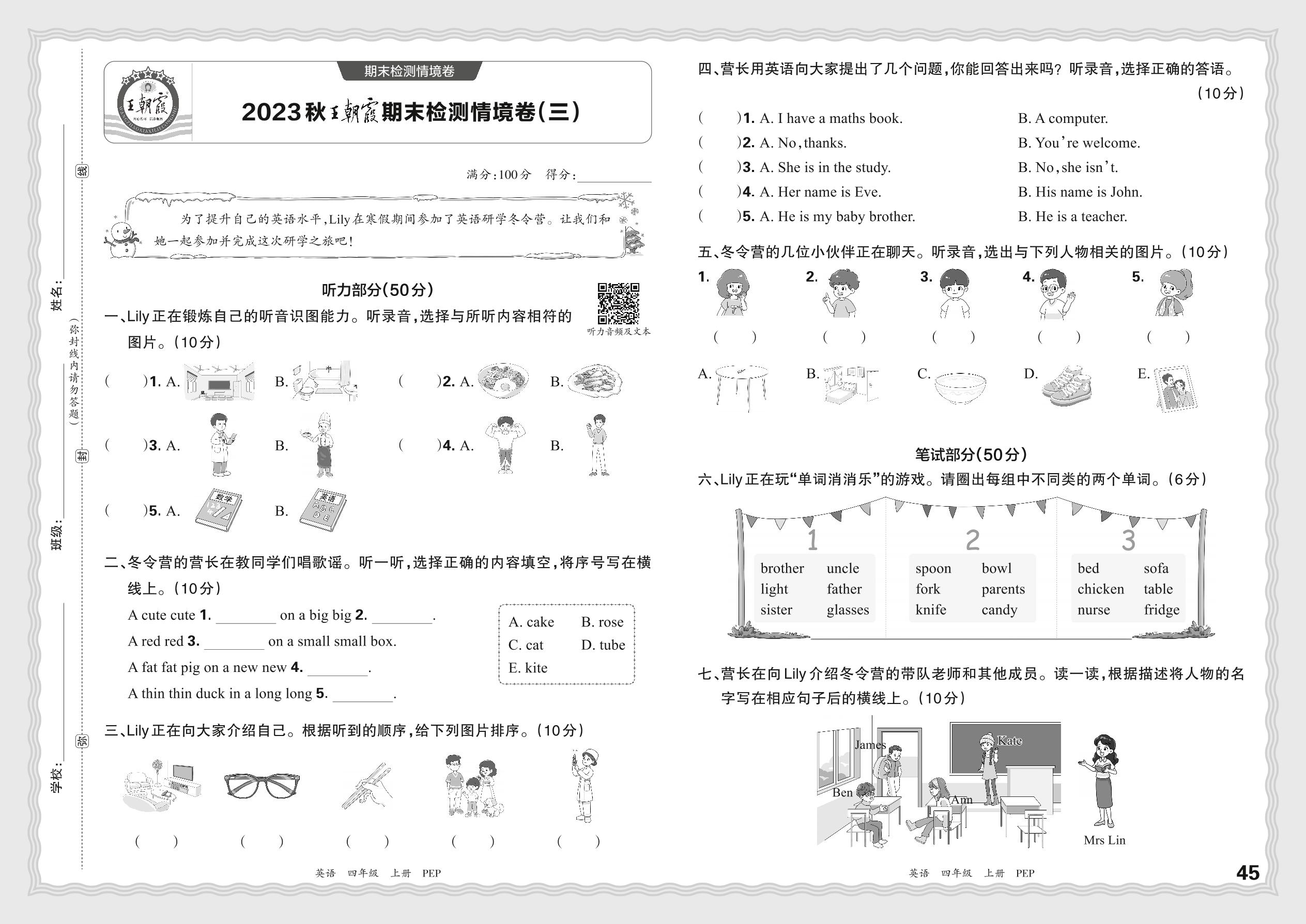 2023秋上册四年级英语人教PEP版 王朝霞期末检测情境卷(三)