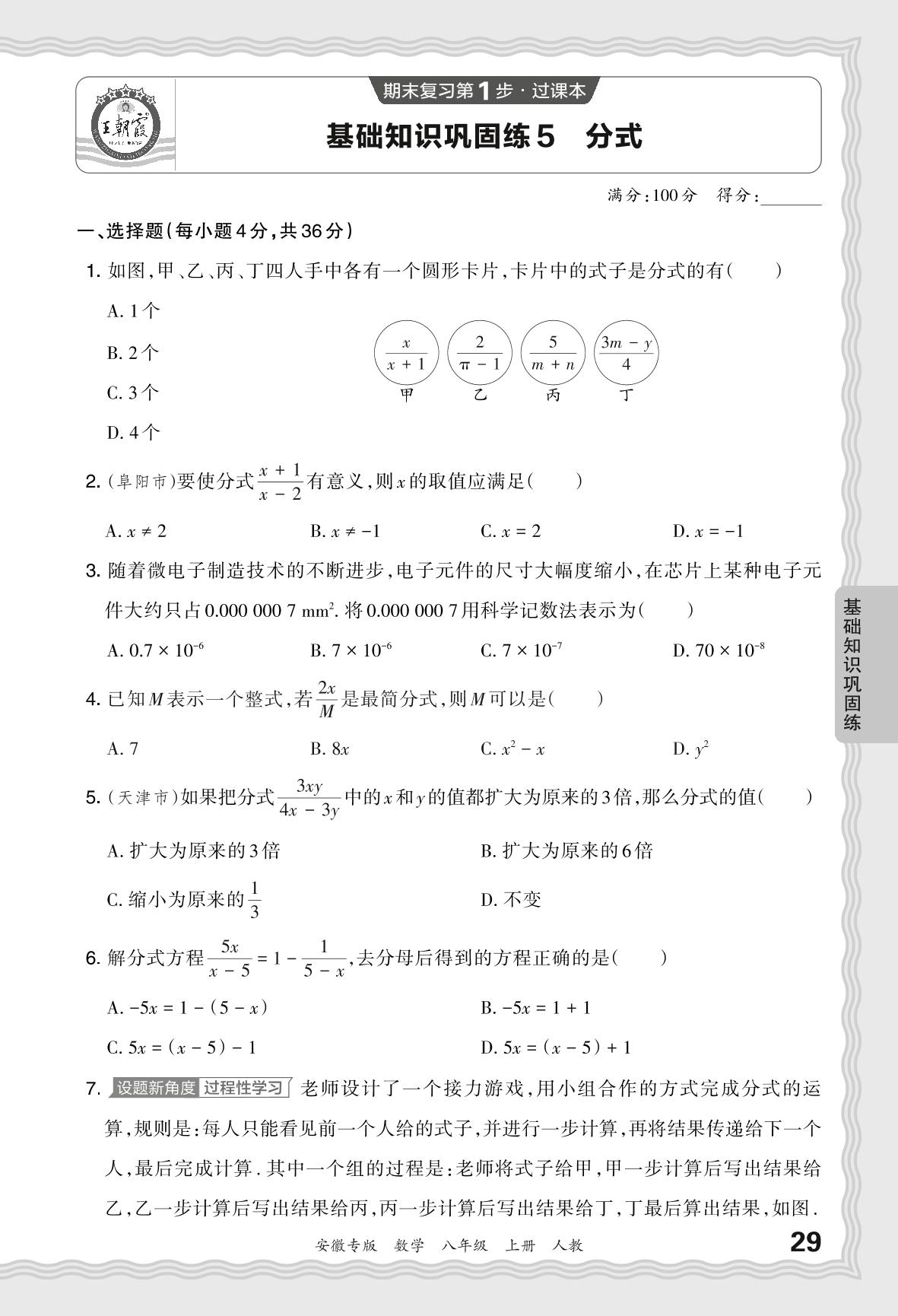 2023秋上册八年级数学人教版 期末过课本·基础知识巩固练 分式【5】