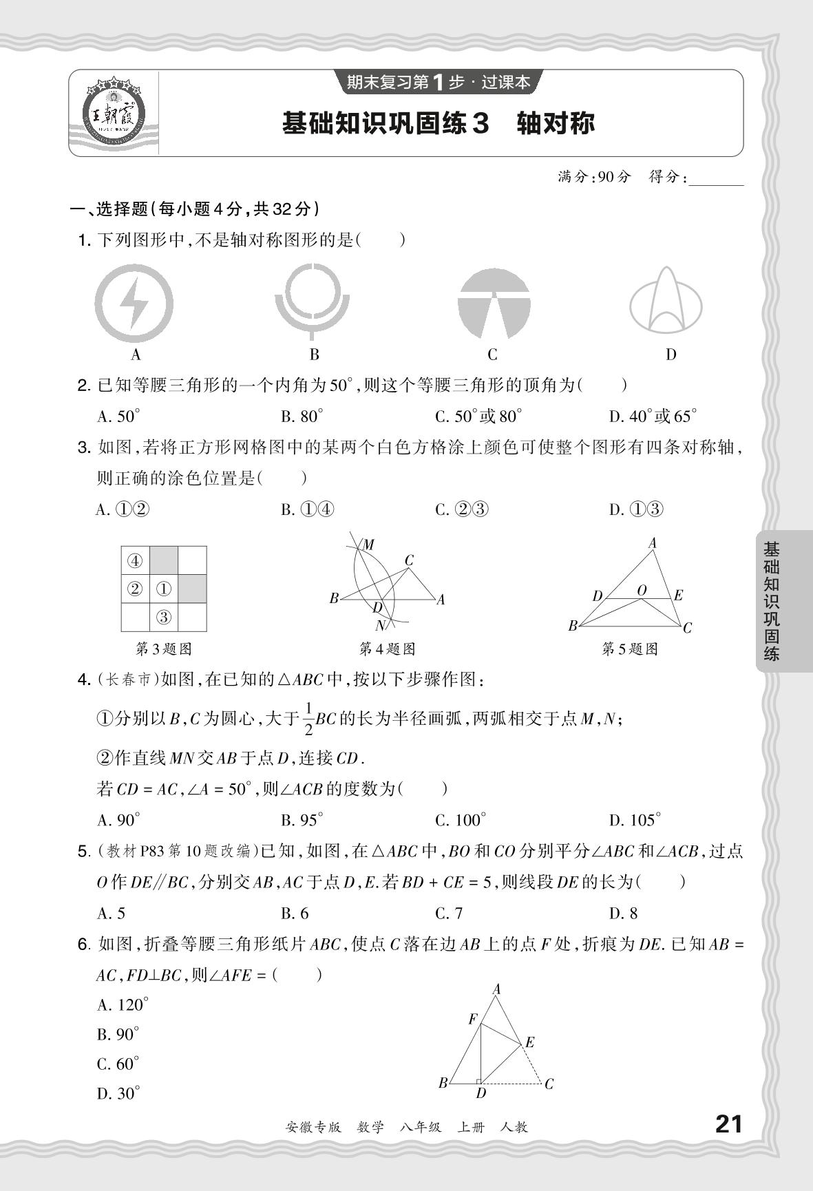 2023秋上册八年级数学人教版 期末过课本·基础知识巩固练 轴对称【3】