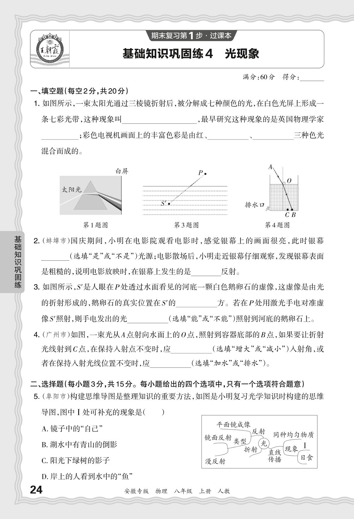 2023秋上册八年级物理人教版 期末过课本·基础知识巩固练 光现象【4】