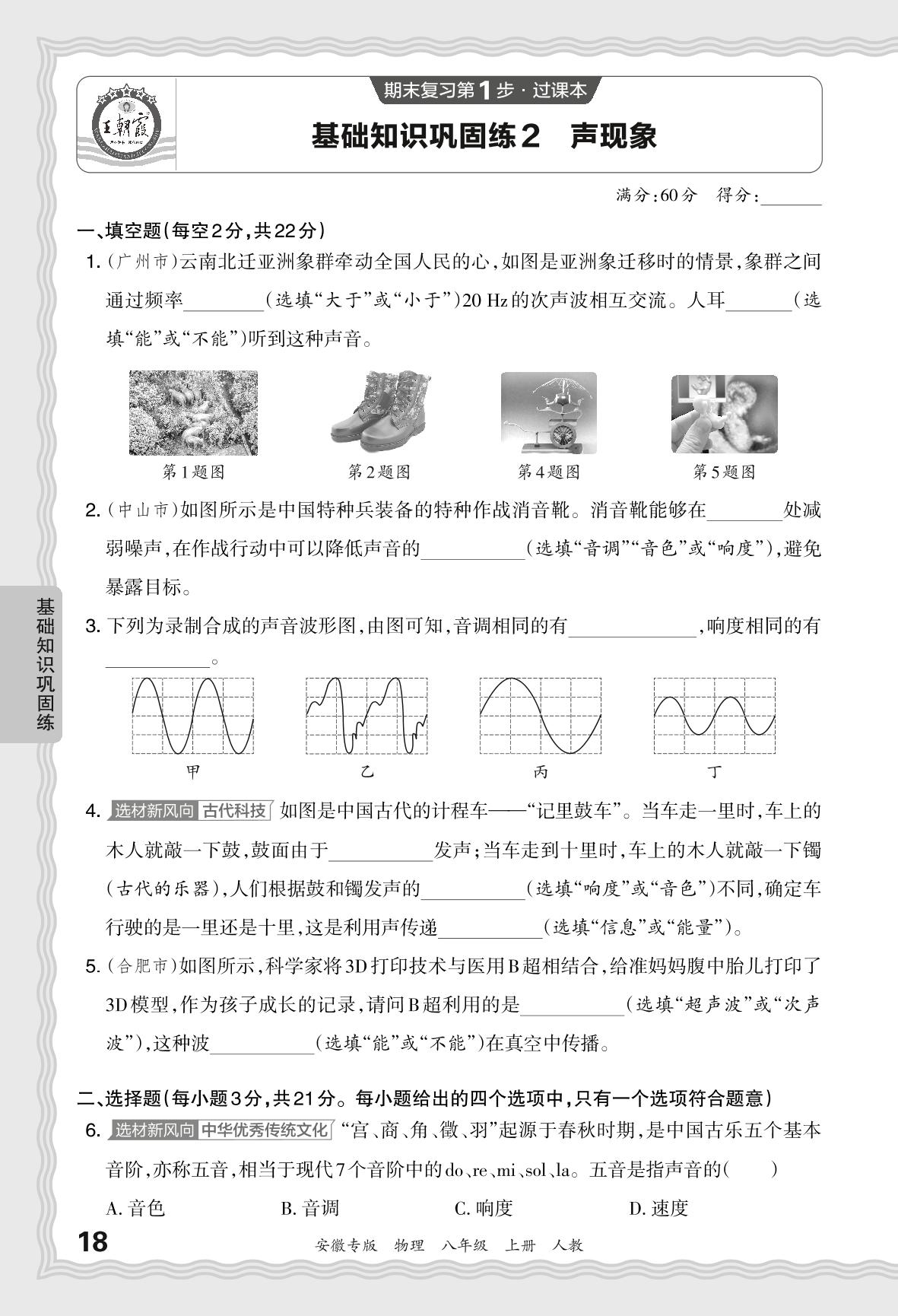 2023秋上册八年级物理人教版 期末过课本·基础知识巩固练 声现象【2】