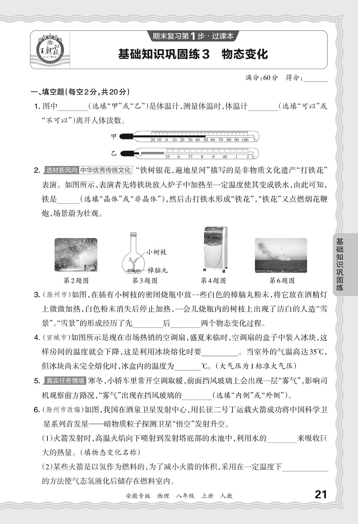 2023秋上册八年级物理人教版 期末过课本·基础知识巩固练 物态变化【3】