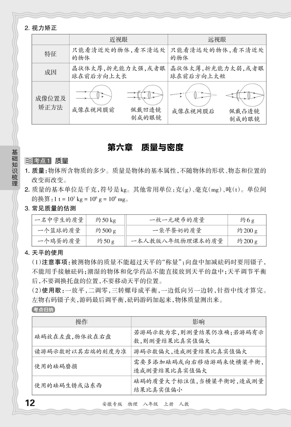 2023秋上册八年级物理人教版 期末过课本·基础知识梳理 第六章 质量与密度