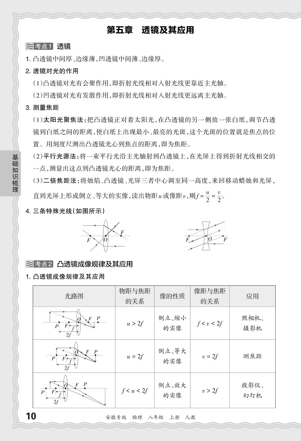 2023秋上册八年级物理人教版 期末过课本·基础知识梳理 第五章 透镜及其应用