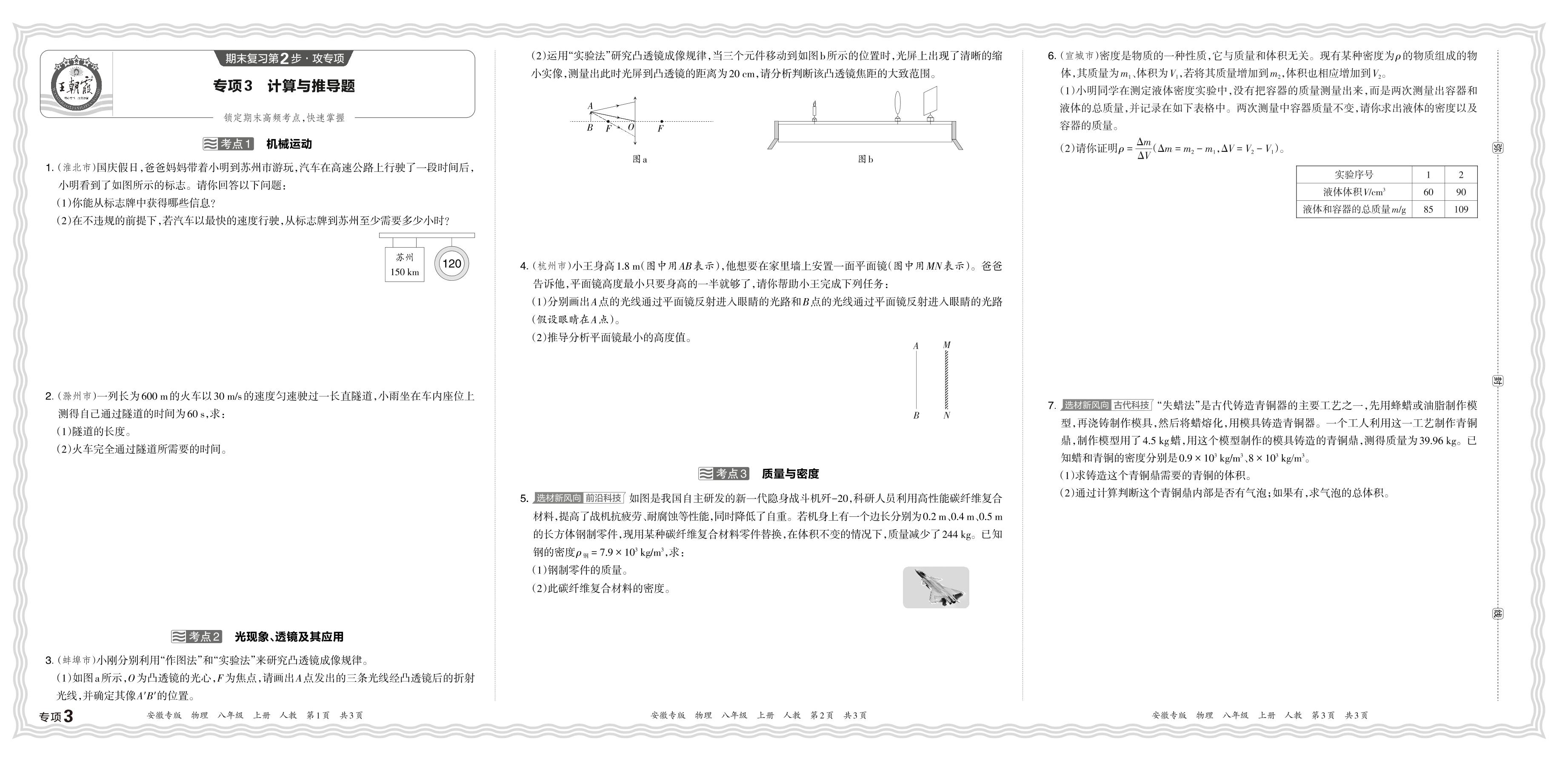 2023秋上册八年级物理人教版 期末专项卷·计算与推导题【3】