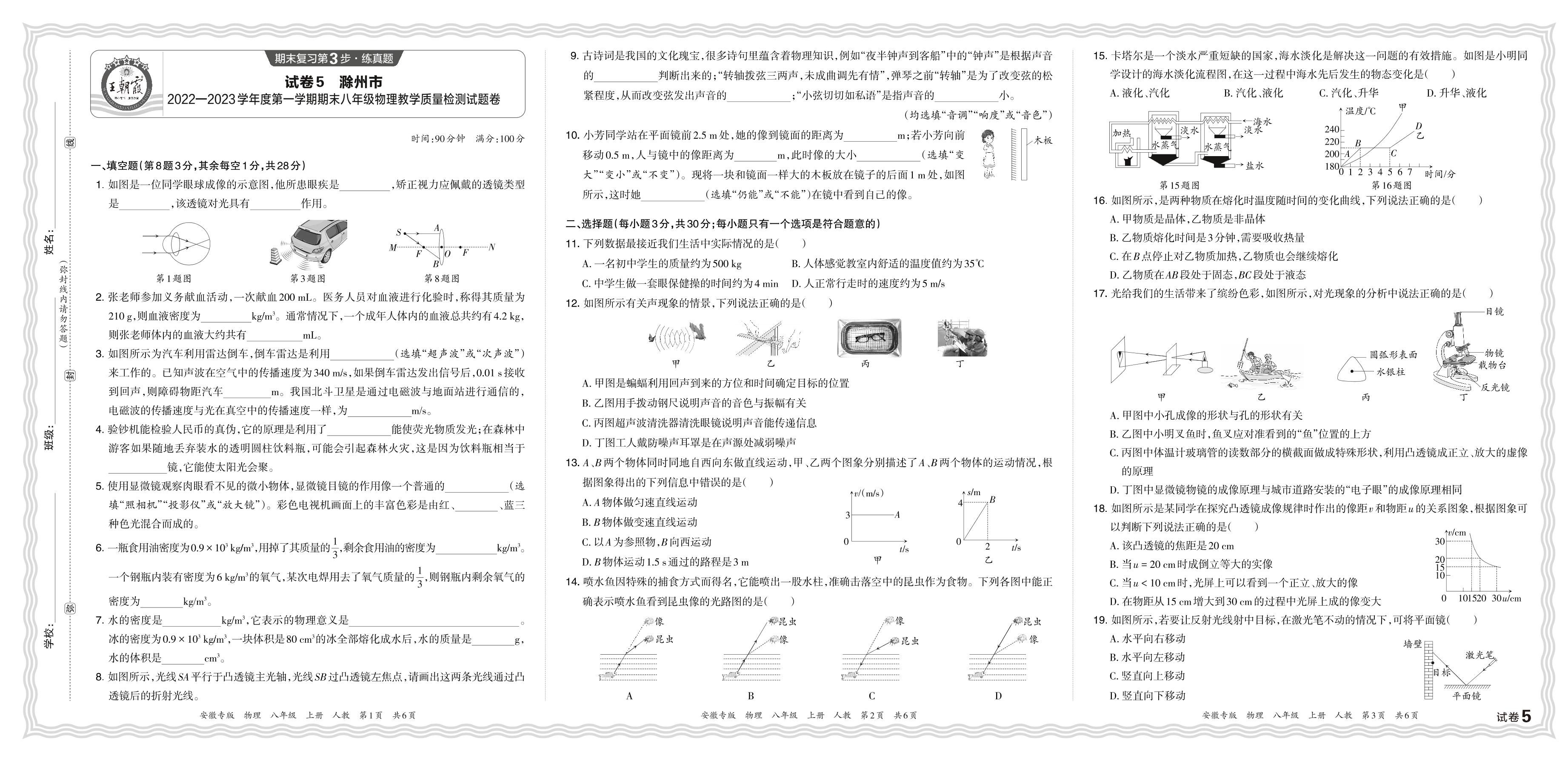 安徽省滁州市2022—2023学年度第一学期期末八年级物理教学质量检测试题卷(人教版)【5】