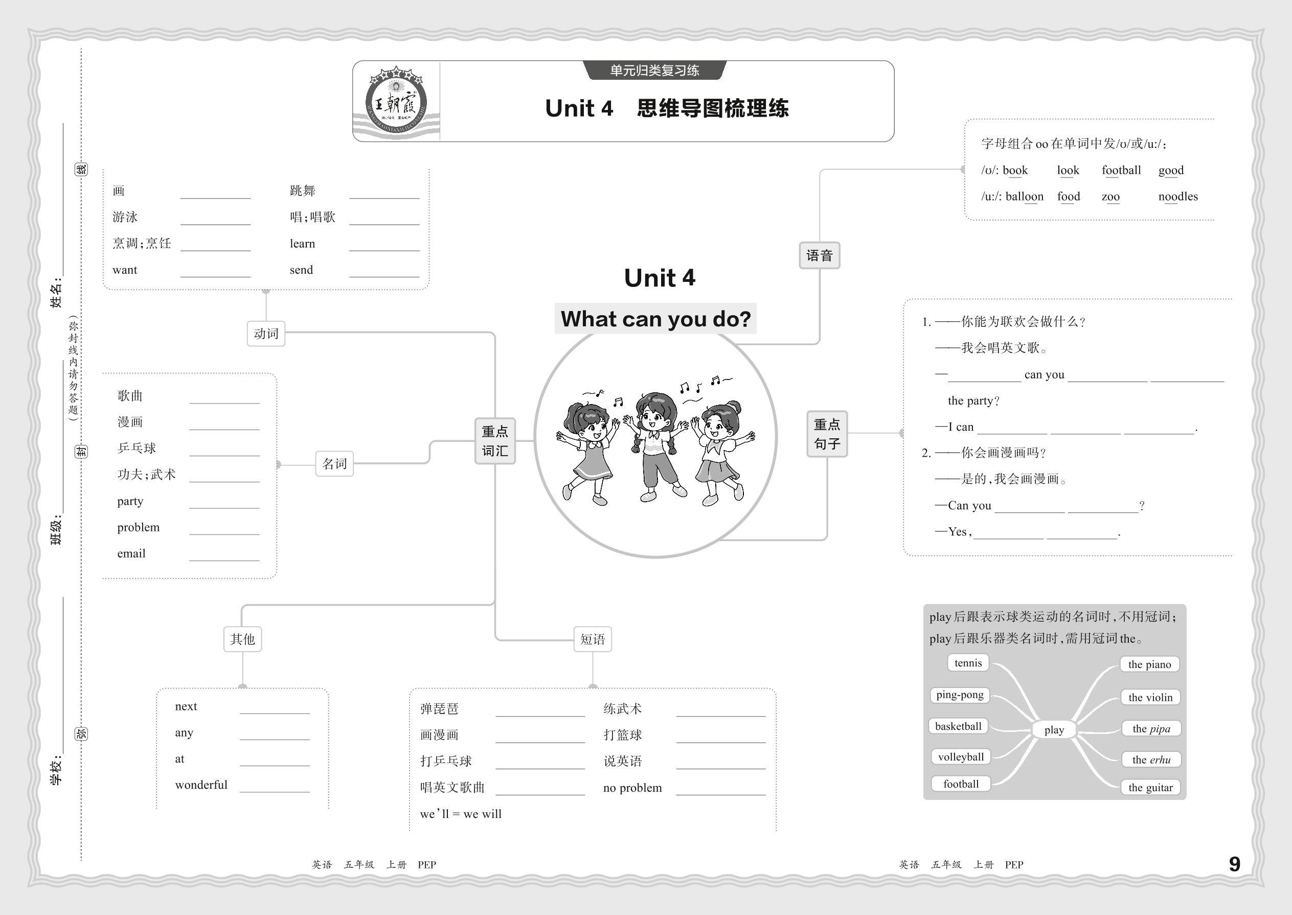 2023秋上册五年级英语人教PEP版 期末过课本·单元归类复习练—Unit 4