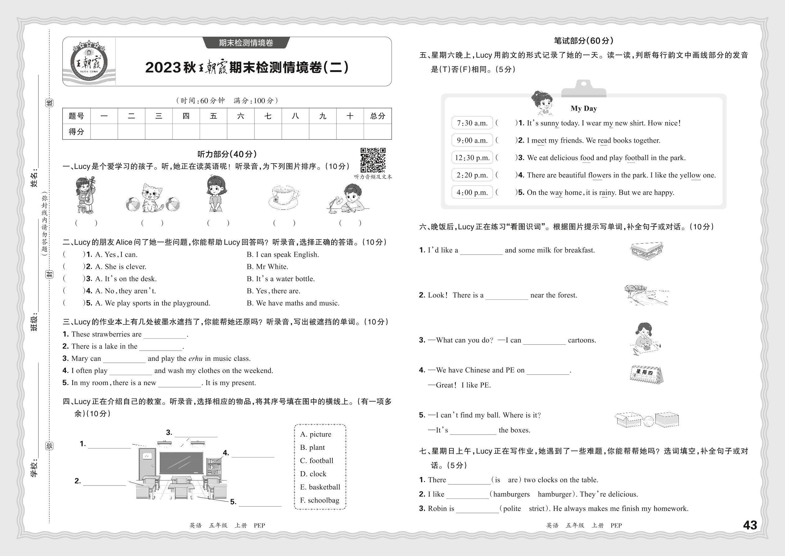 2023秋上册五年级英语人教PEP版 王朝霞期末检测情境卷(二)