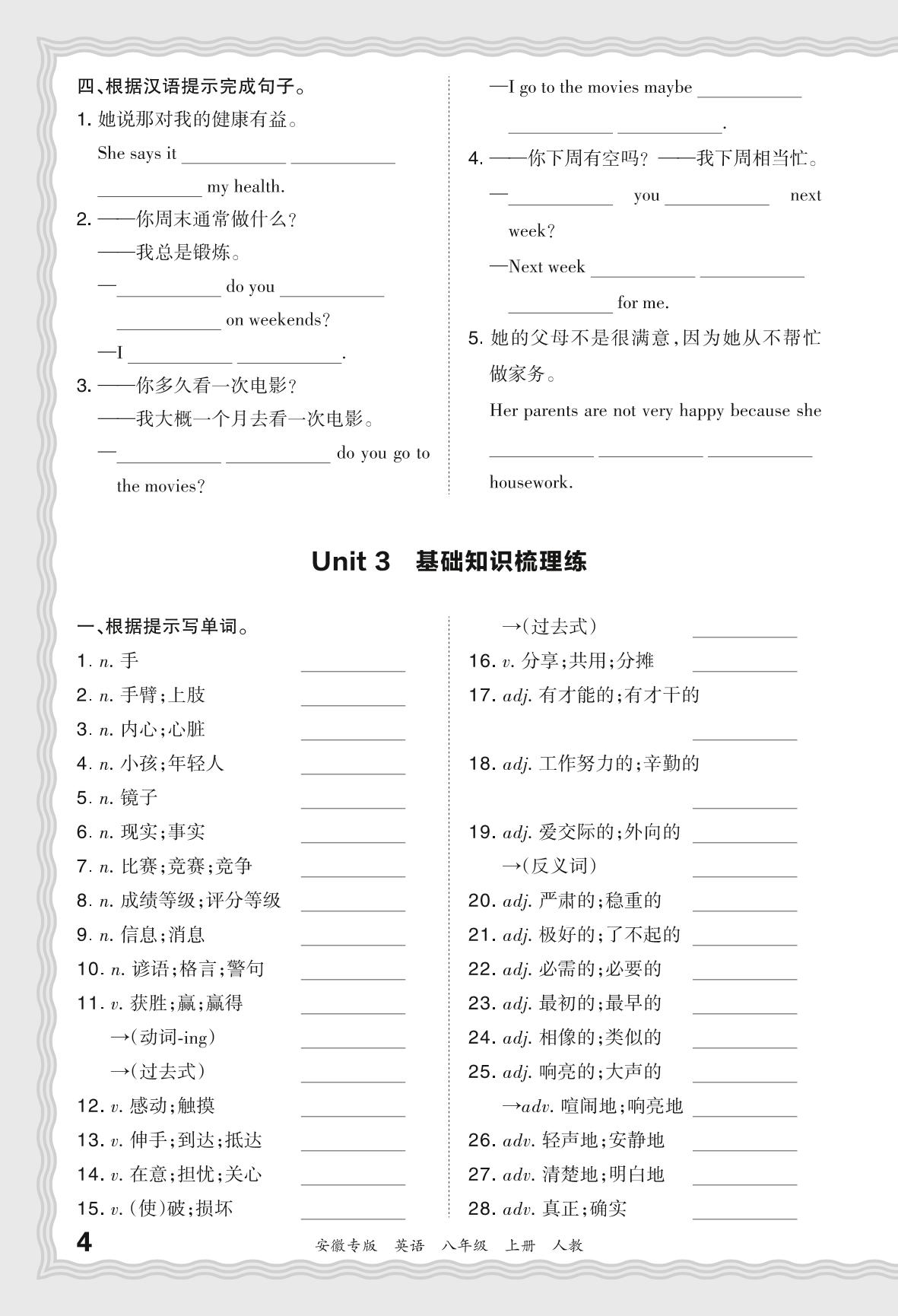 2023秋上册八年级英语人教版 期末过课本·Unit 3 基础知识梳理练