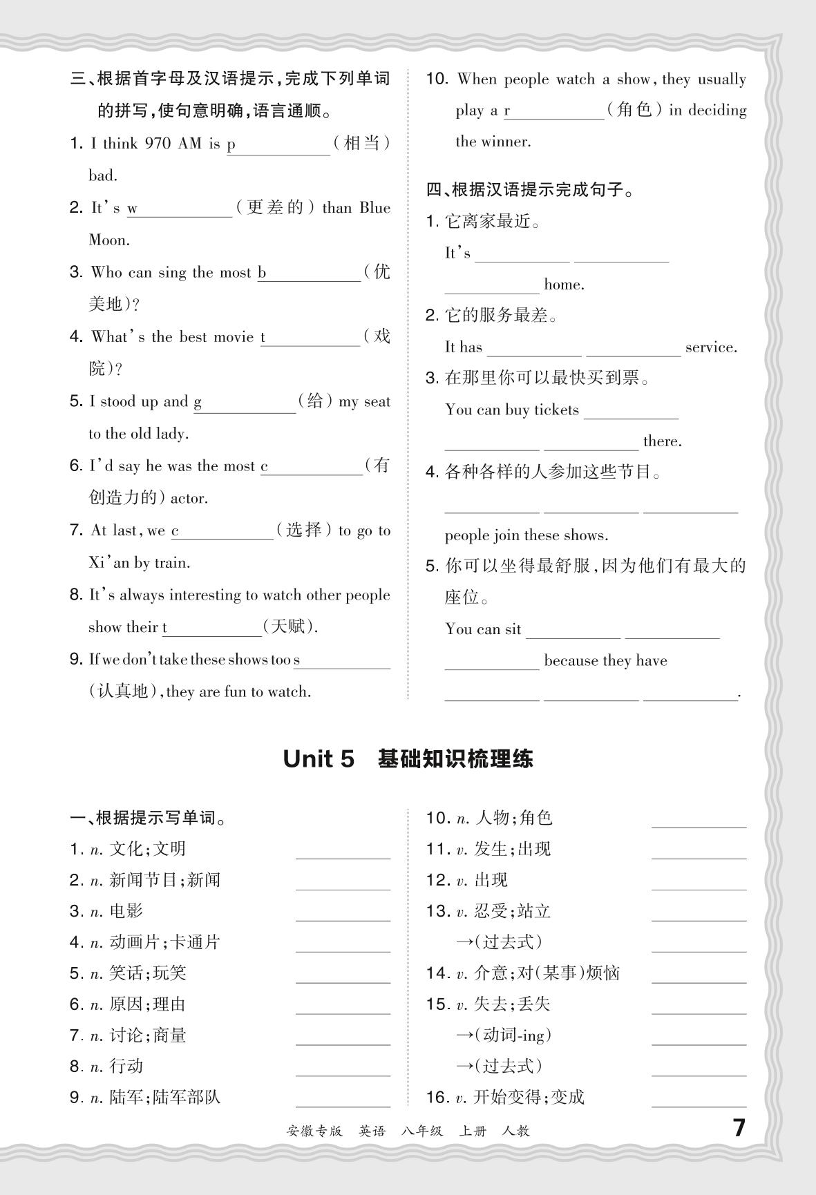 2023秋上册八年级英语人教版 期末过课本·Unit 5 基础知识梳理练