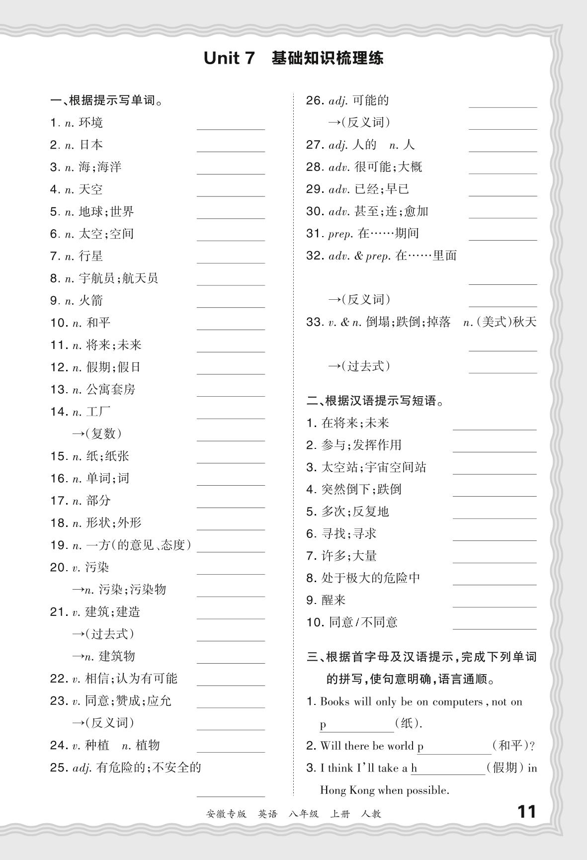 2023秋上册八年级英语人教版 期末过课本·Unit 7 基础知识梳理练