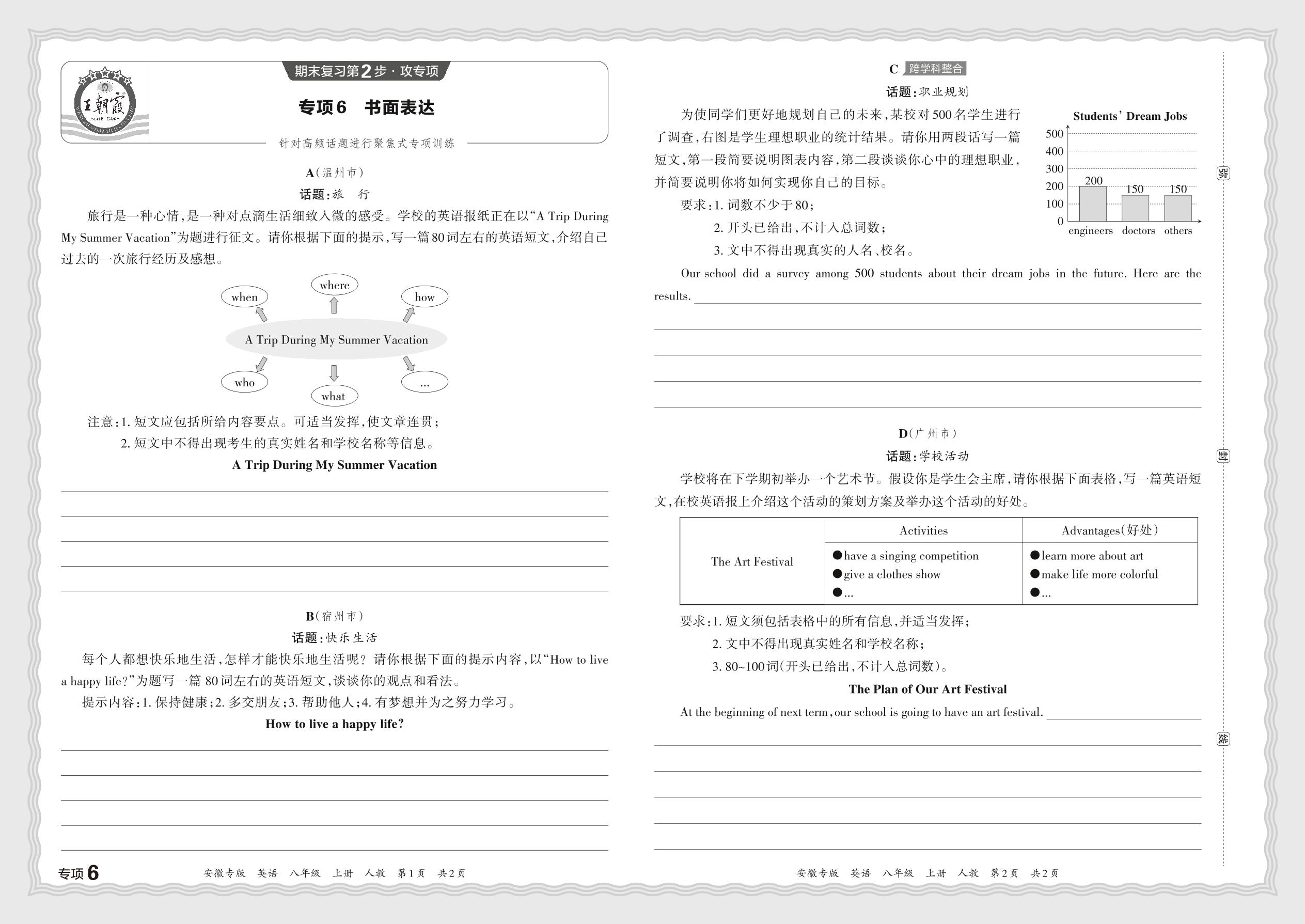 2023秋上册八年级英语人教版 期末专项卷·书面表达【6】
