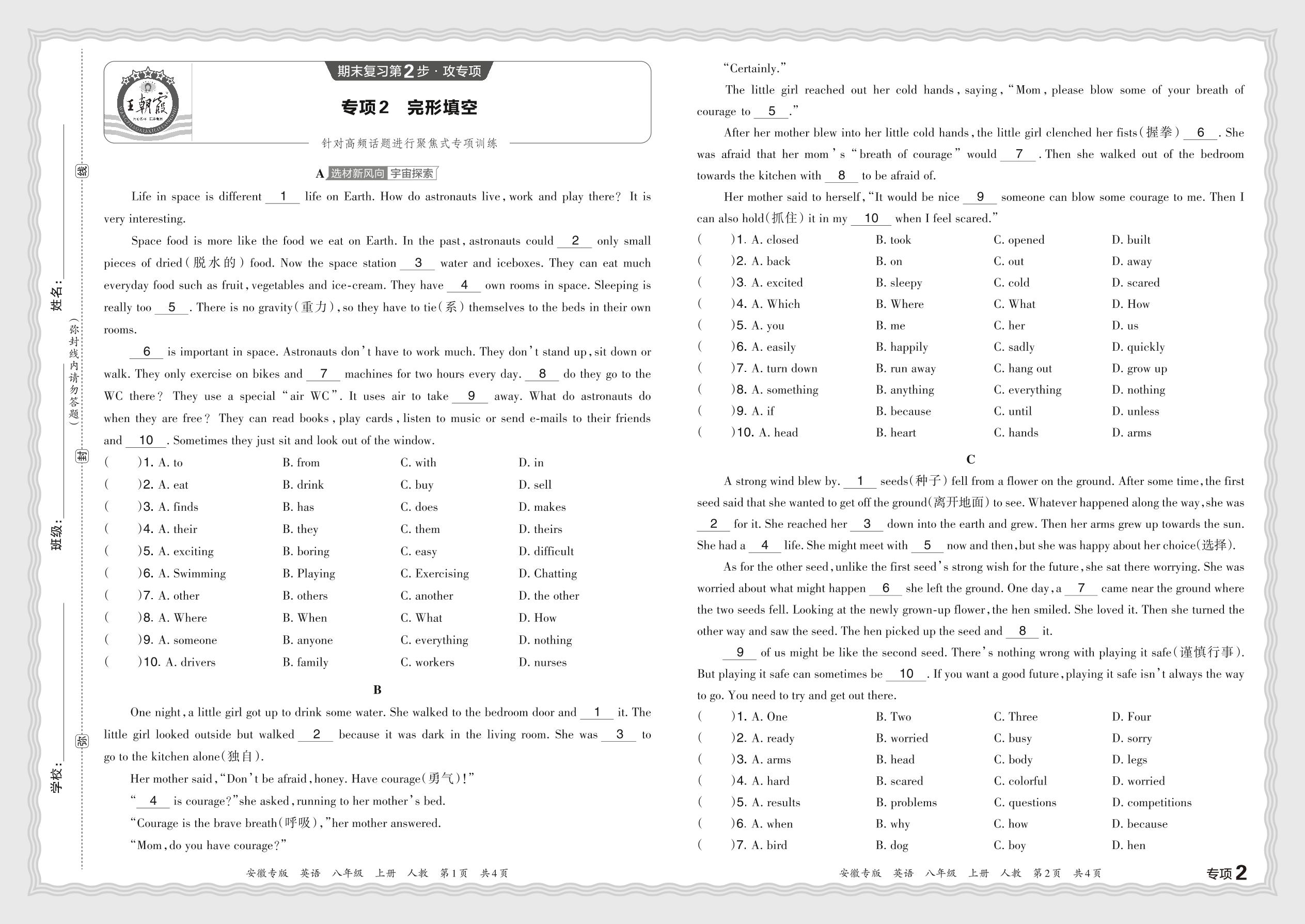 2023秋上册八年级英语人教版 期末专项卷·完形填空【2】