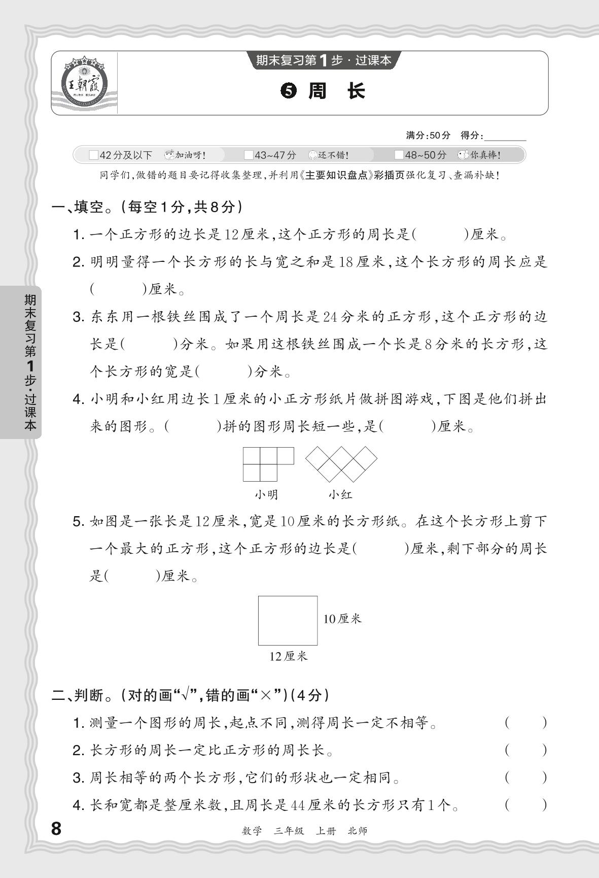 2023秋上册三年级数学北师版 期末过课本QMA版·周长【5】