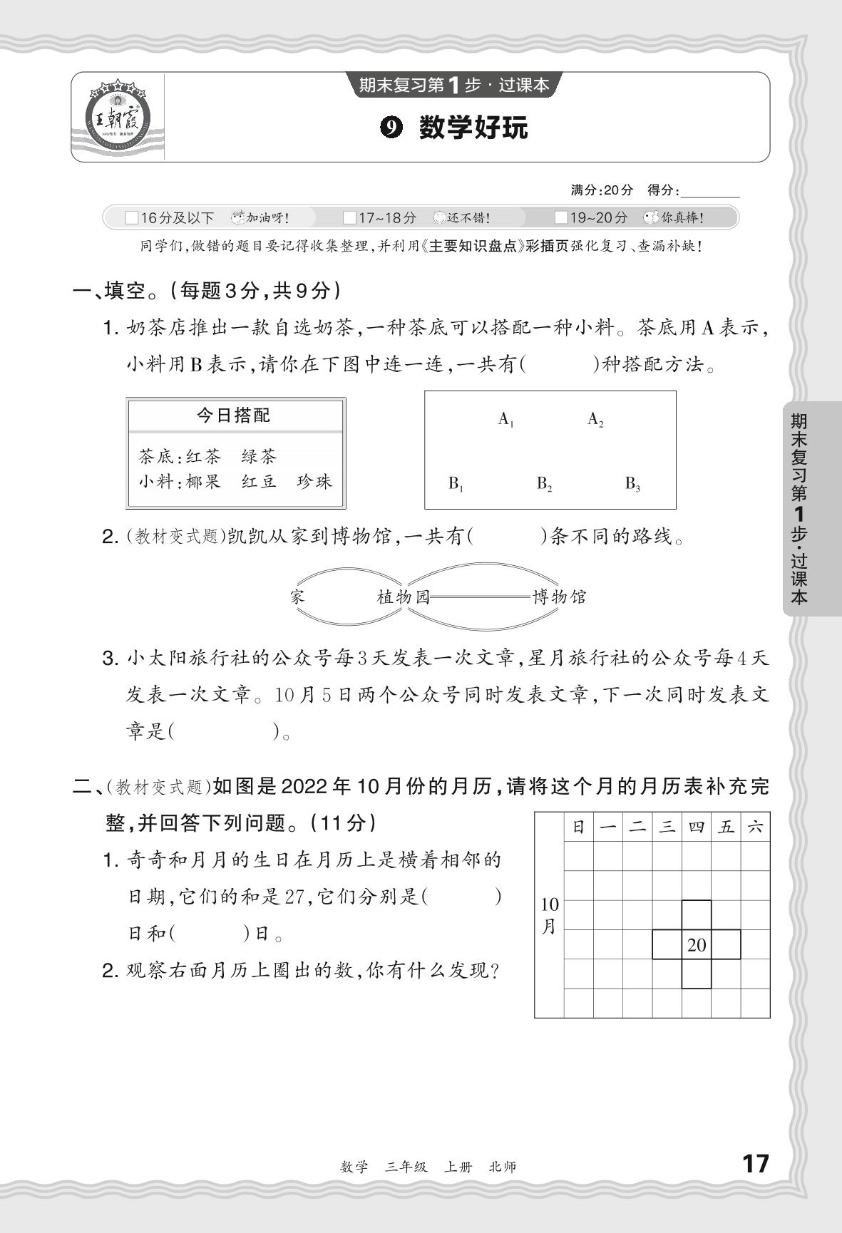 2023秋上册三年级数学北师版 期末过课本QMA版·数学好玩【9】