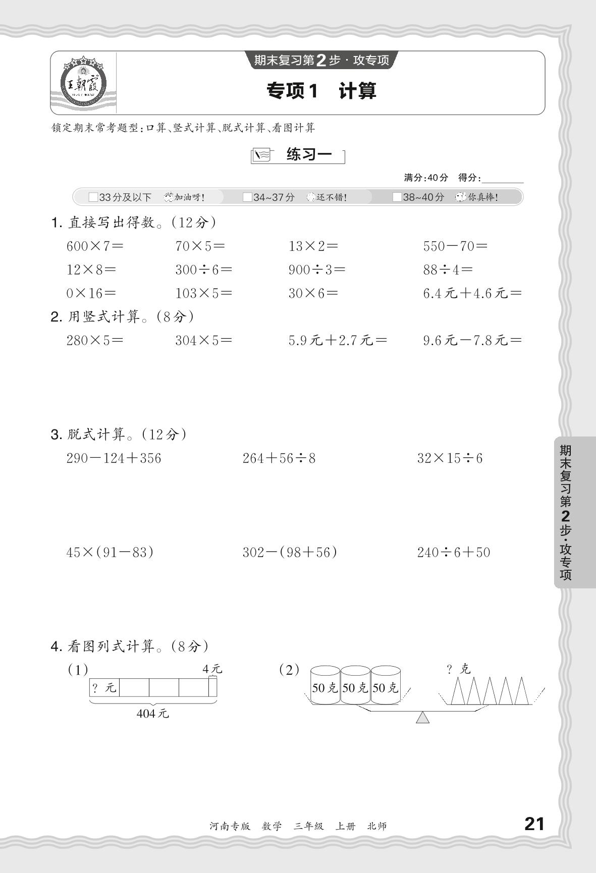 2023秋上册三年级数学北师版 期末专项卷·计算【1】