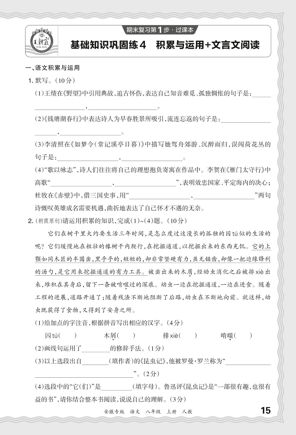2023秋上册八年级语文人教版 期末过课本·基础知识巩固练 积累与运用+文言文阅读【4】