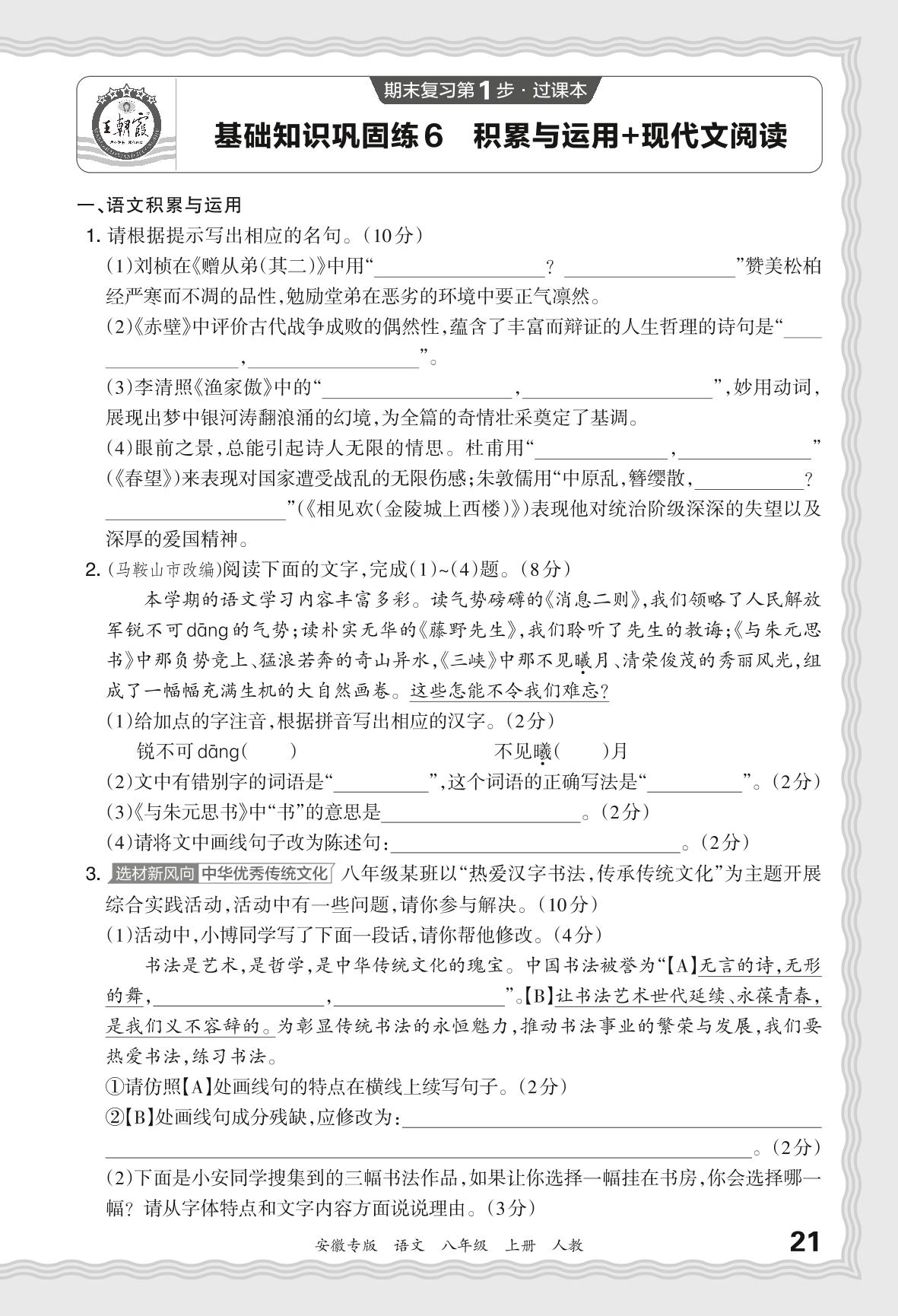 2023秋上册八年级语文人教版 期末过课本·基础知识巩固练 积累与运用+现代文阅读【6】