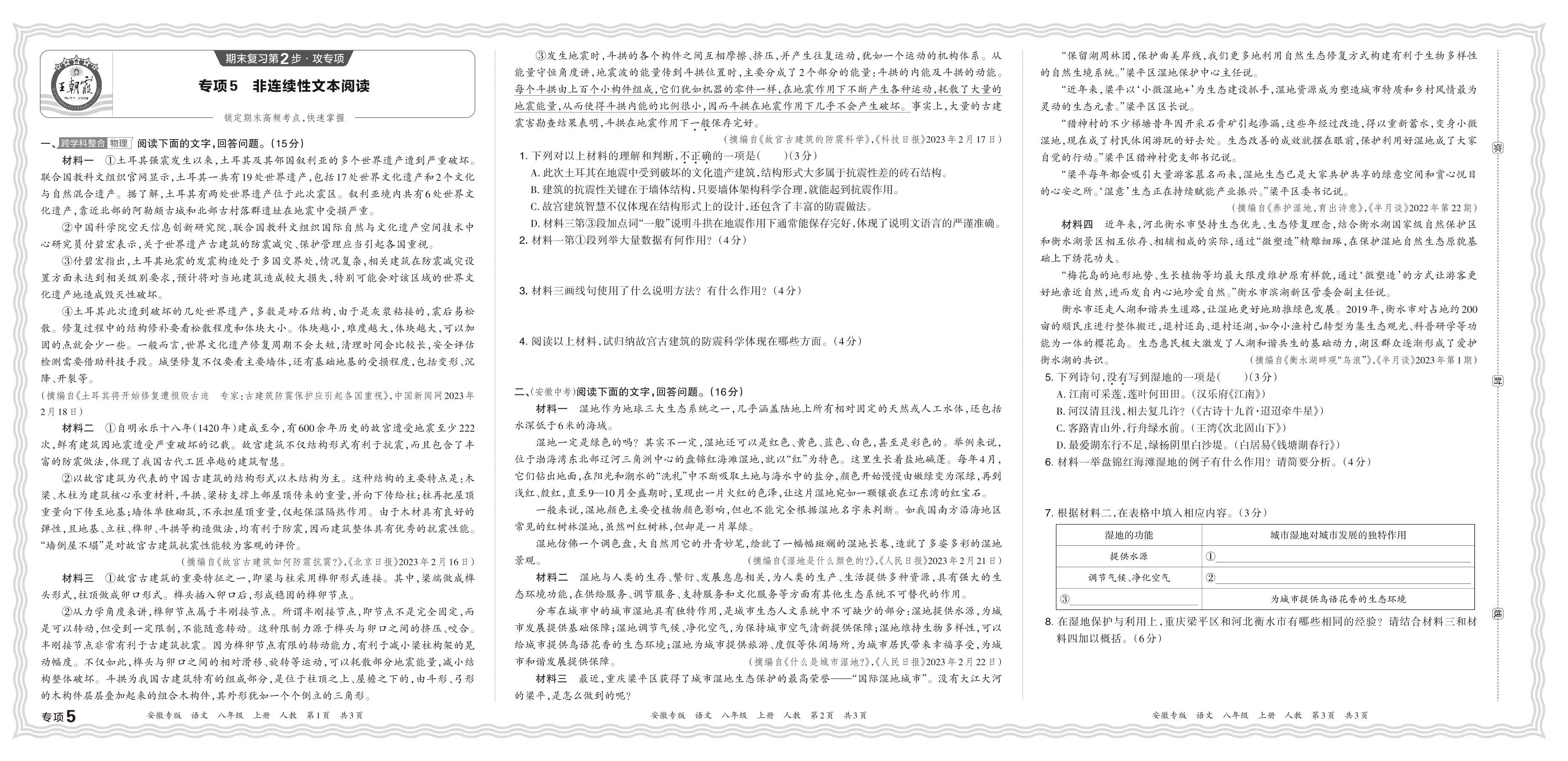 2023秋上册八年级语文人教版 期末专项卷·非连续性文本阅读【5】