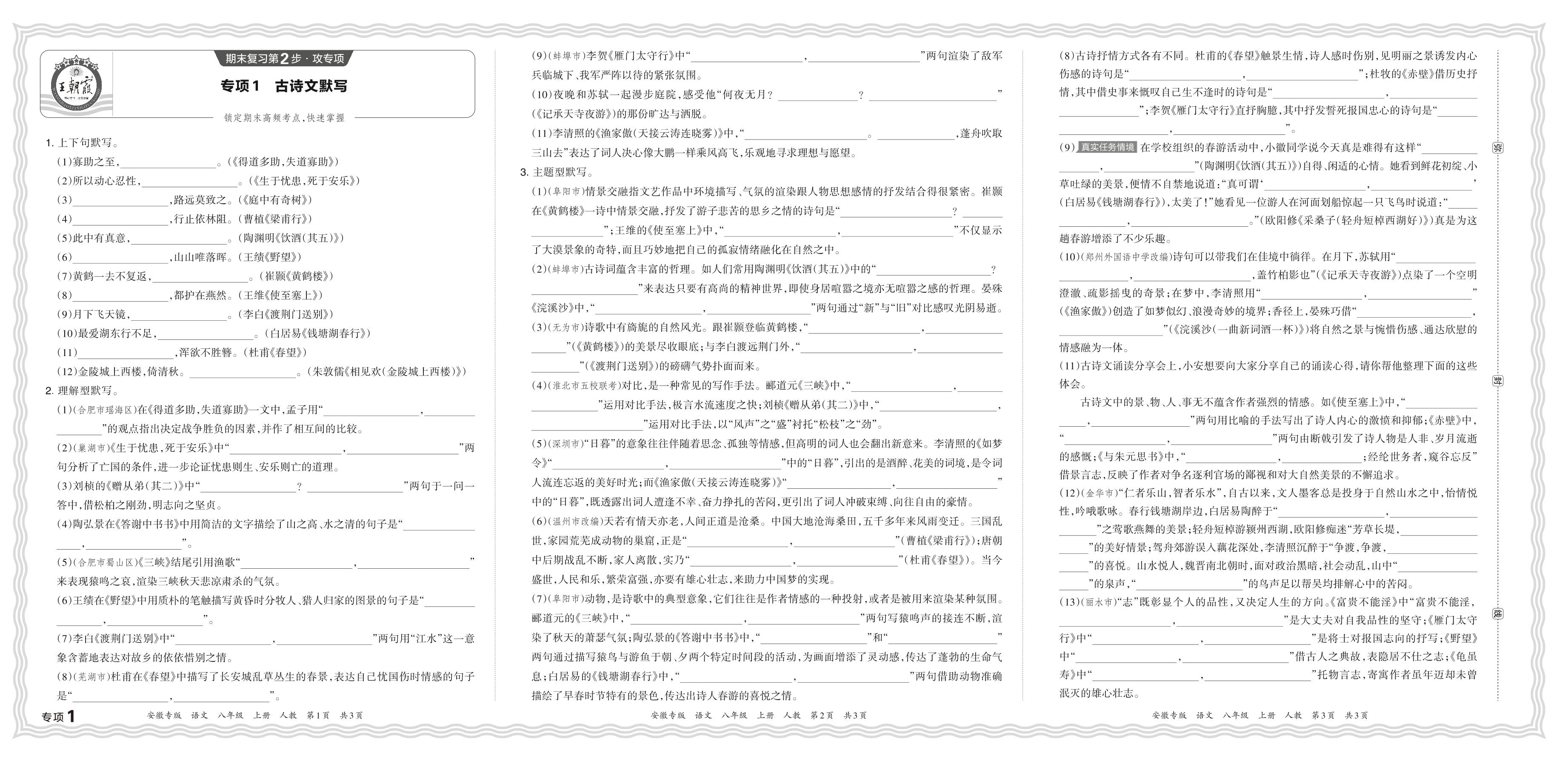 2023秋上册八年级语文人教版 期末专项卷·古诗文默写【1】