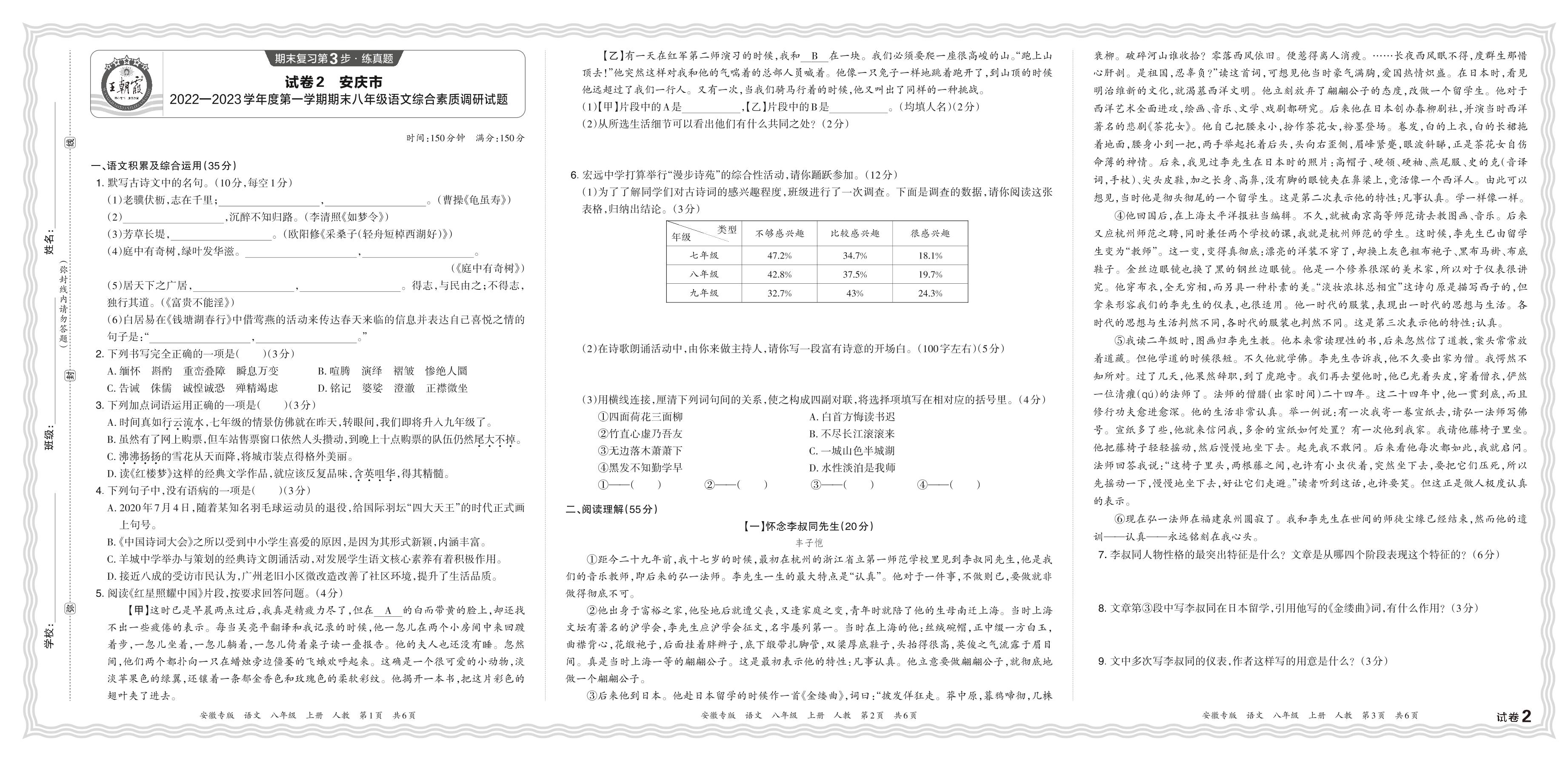 安徽省安庆市2022—2023学年度第一学期期末八年级语文综合素质调研试题(人教版)【2】
