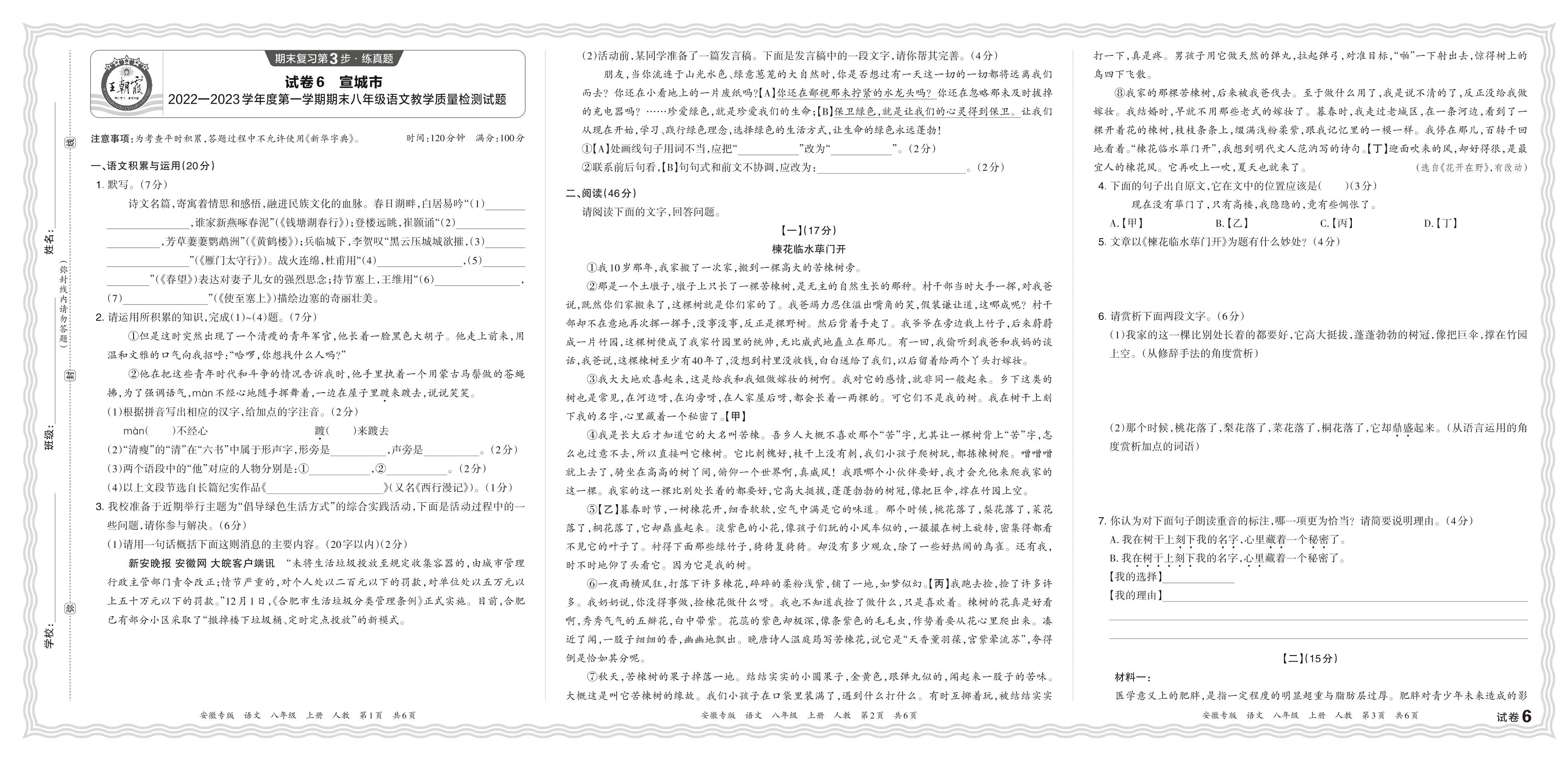 安徽省宣城市2022—2023学年度第一学期期末八年级语文教学质量检测试题(人教版)【6】