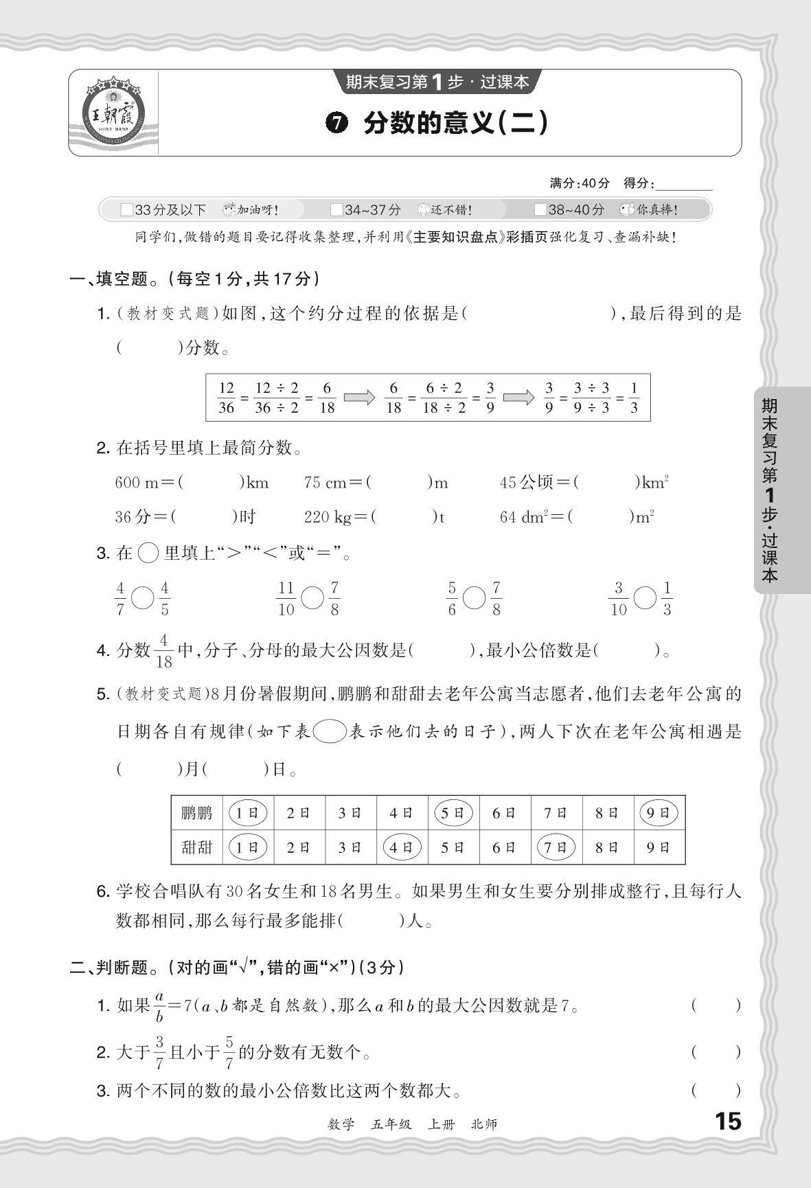 2023秋上册五年级数学北师版 期末过课本QMA版·分数的意义(二)【7】