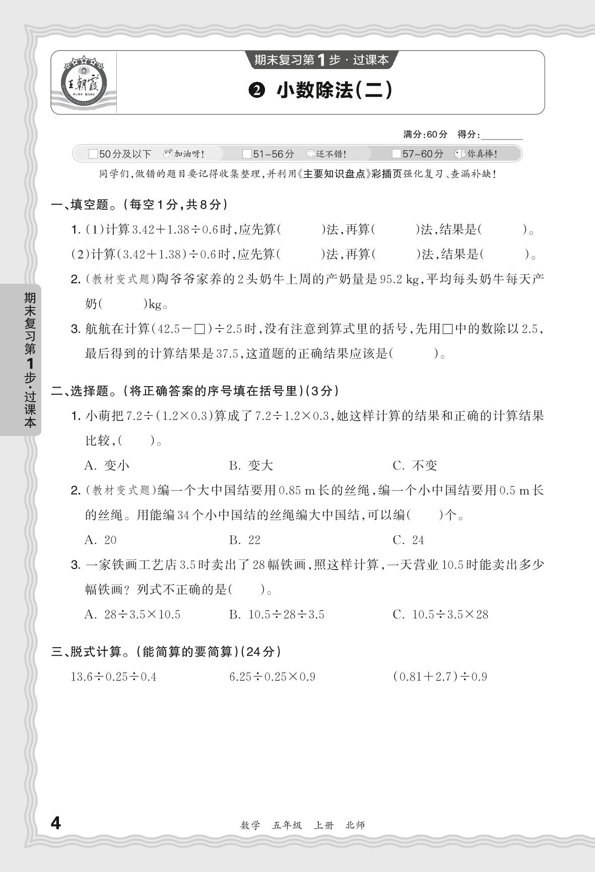 2023秋上册五年级数学北师版 期末过课本QMA版·小学除法(二)【2】