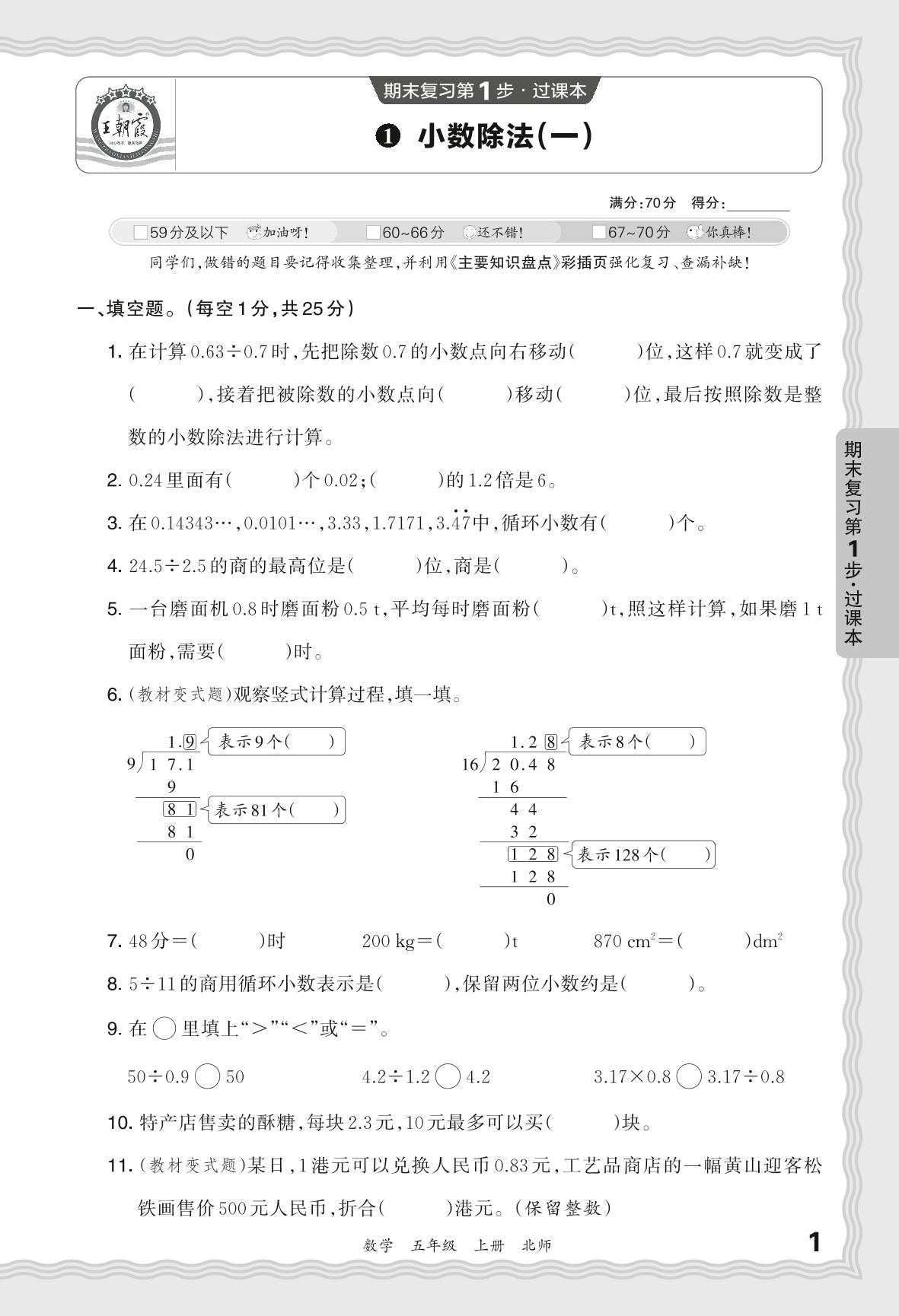 2023秋上册五年级数学北师版 期末过课本QMA版·小学除法(一)【1】