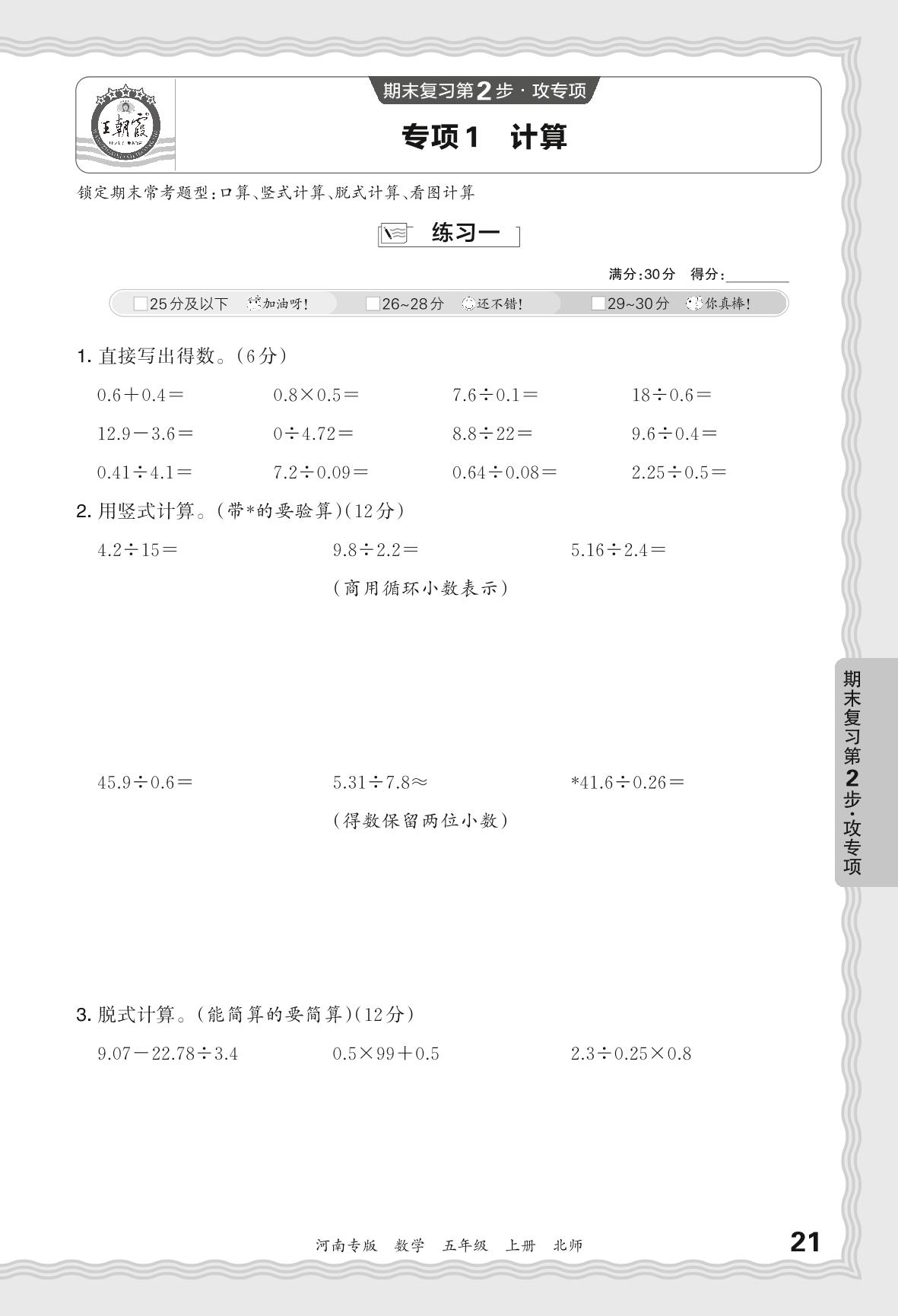 2023秋上册五年级数学北师版 期末专项卷·计算【1】