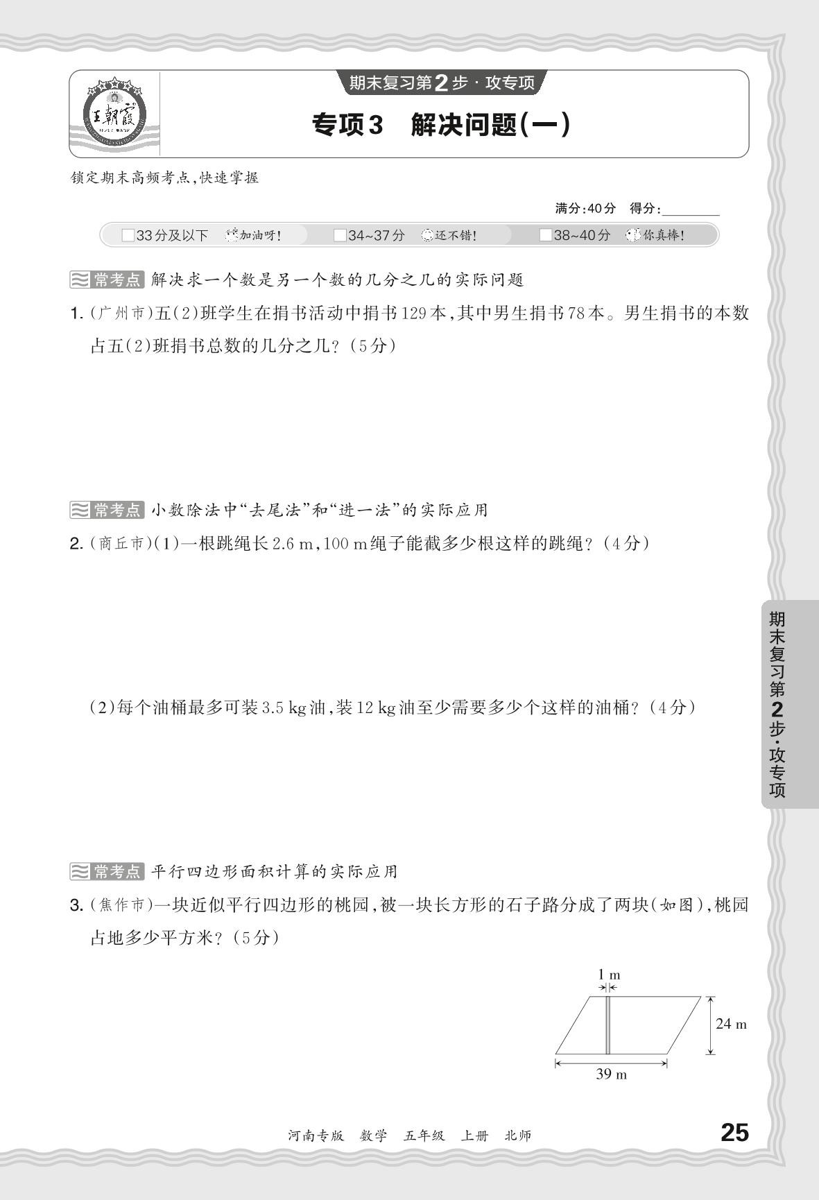 2023秋上册五年级数学北师版 期末专项卷·解决问题(一)【3】