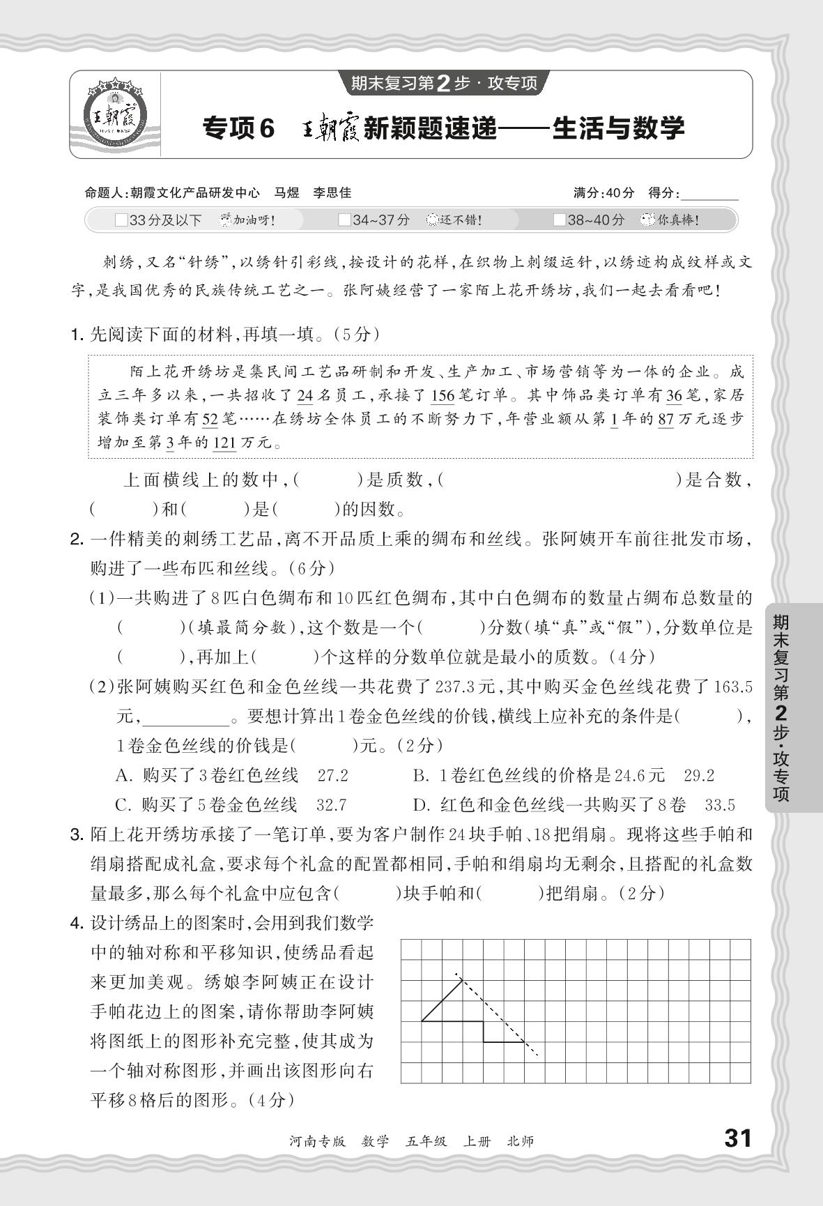 2023秋上册五年级数学北师版 期末专项卷·王朝霞新颖题速递——生活与数学【6】