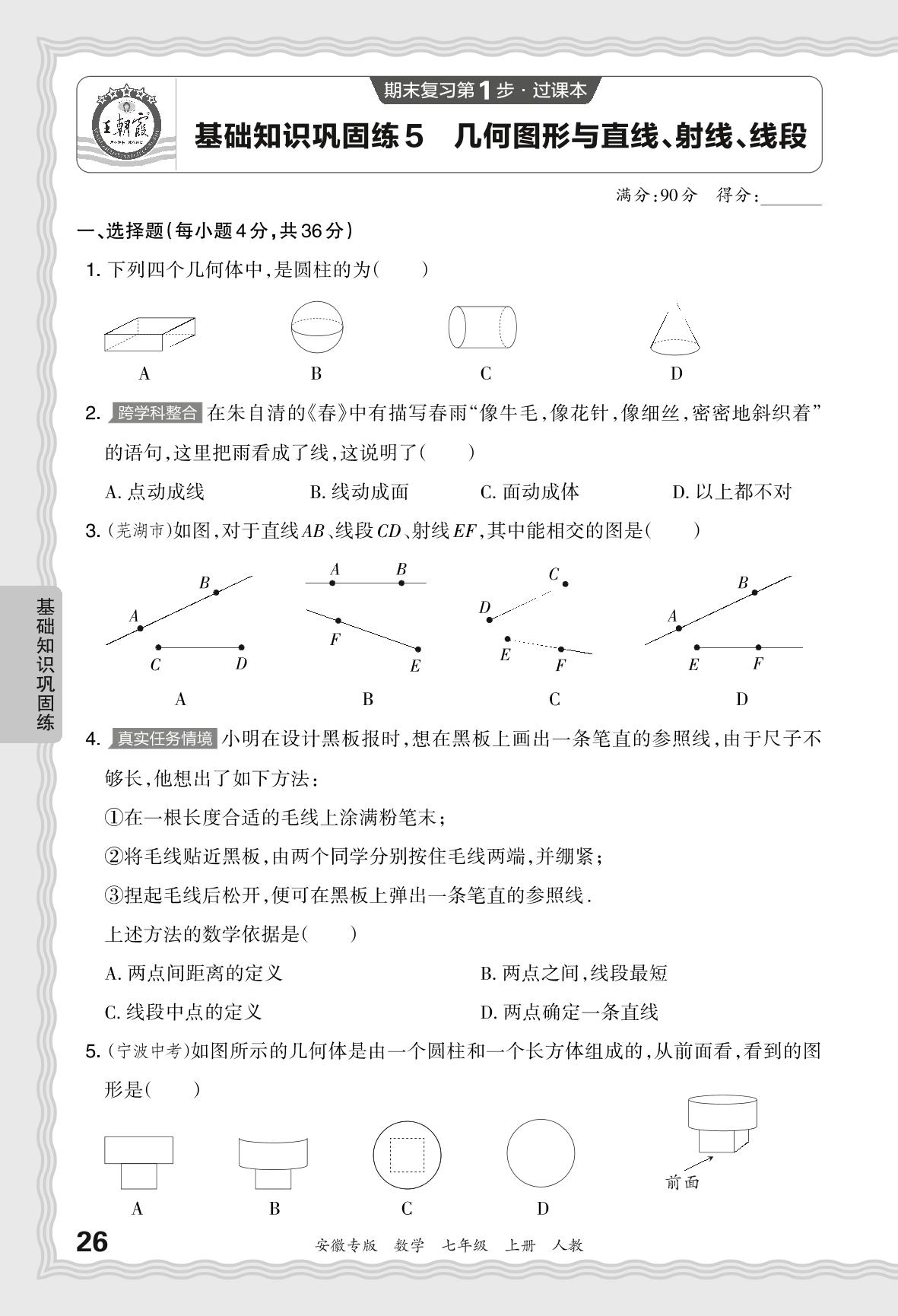 2023秋上册七年级数学人教版 期末过课本·基础知识巩固练 几何图形与直线、射线、线段【5】