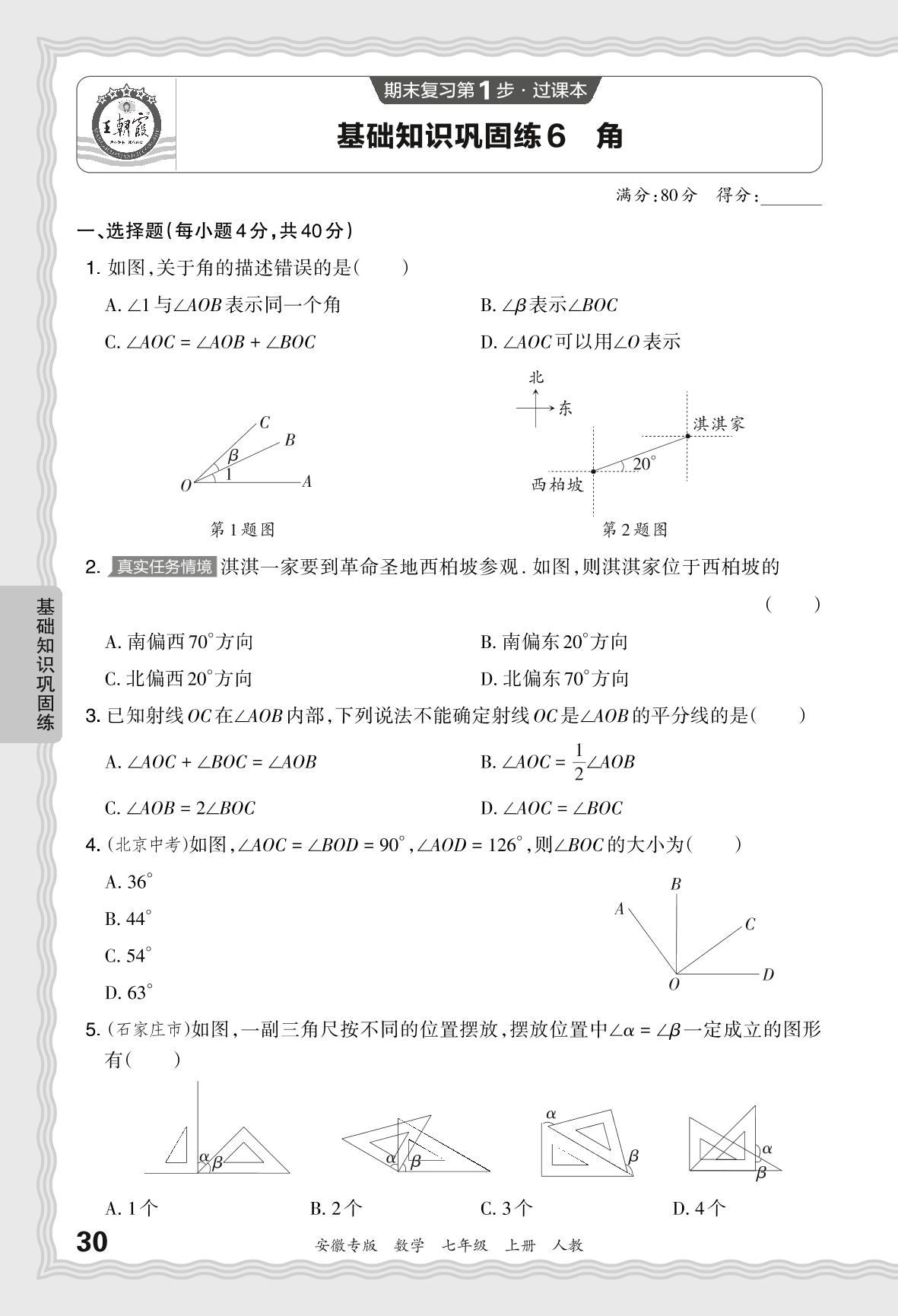 2023秋上册七年级数学人教版 期末过课本·基础知识巩固练 角【6】