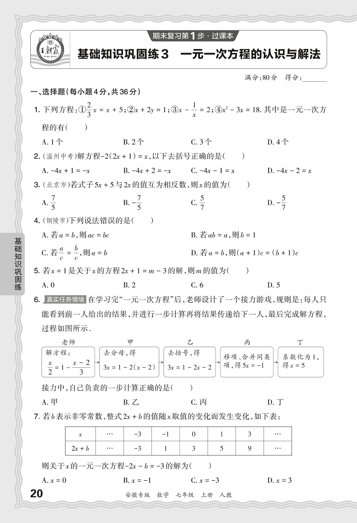 2023秋上册七年级数学人教版 期末过课本·基础知识巩固练 一元一次方程的认识与解法【3】