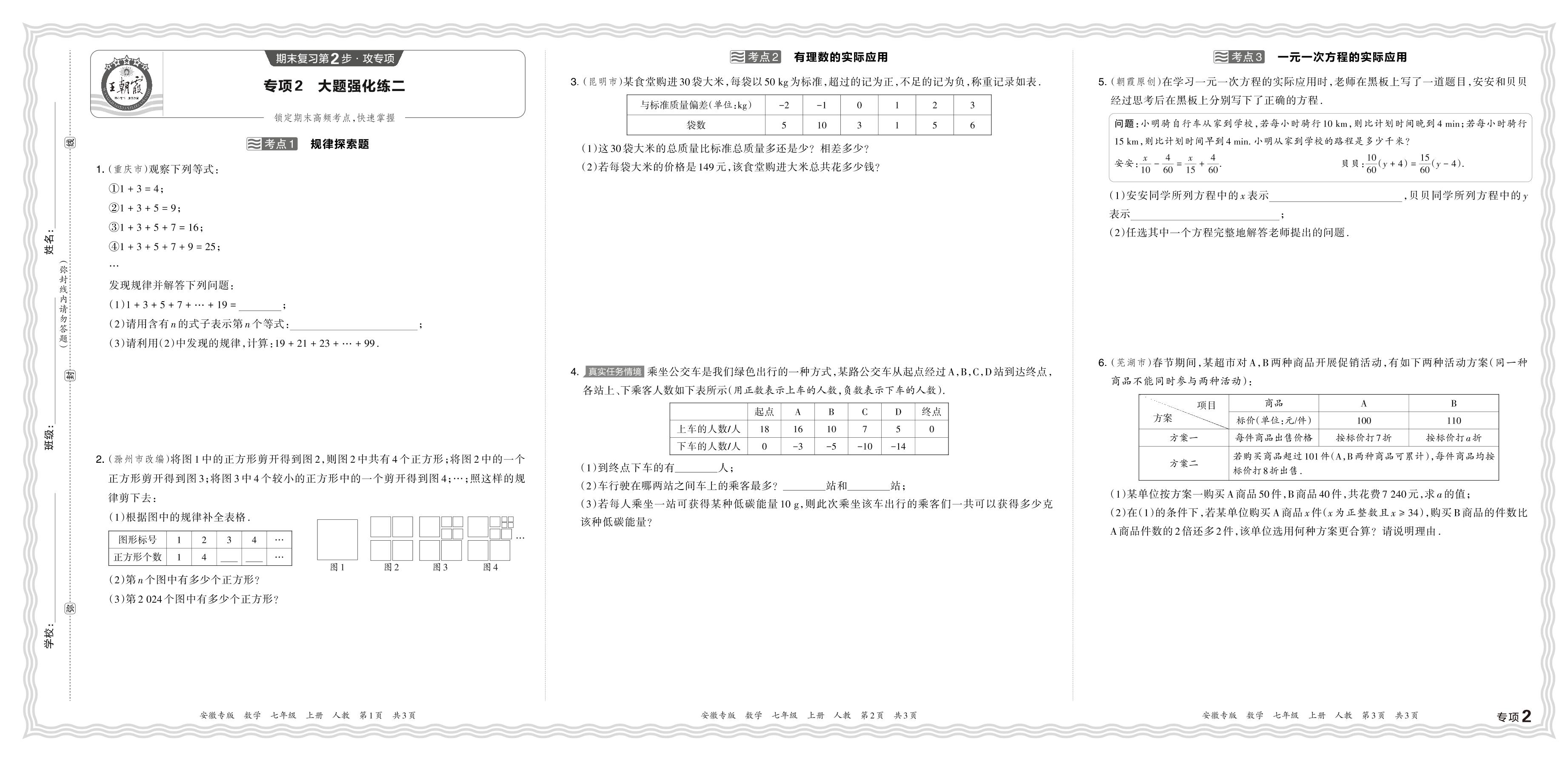 2023秋上册七年级数学人教版 期末专项卷·大题强化练二