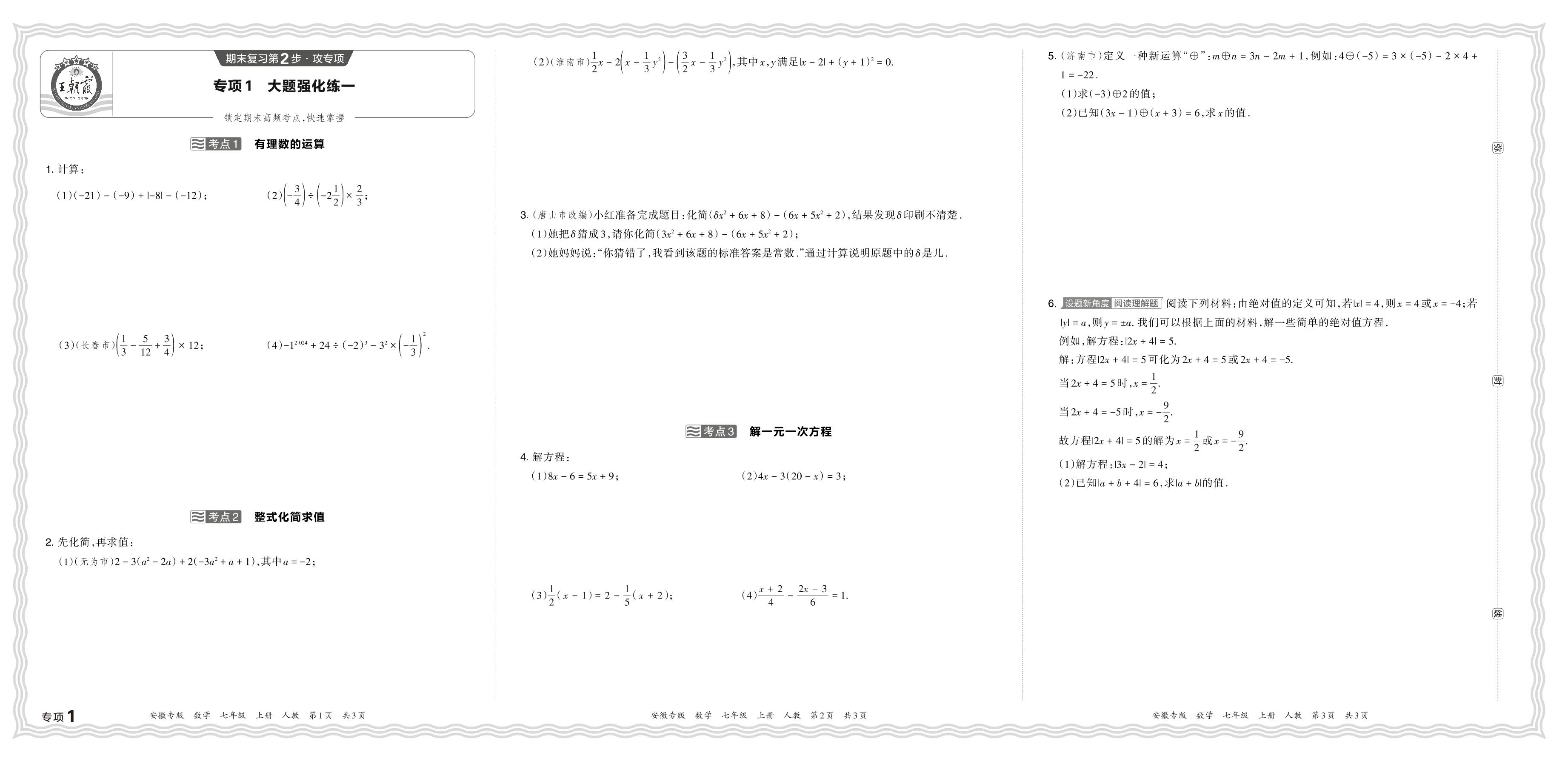 2023秋上册七年级数学人教版 期末专项卷·大题强化练一