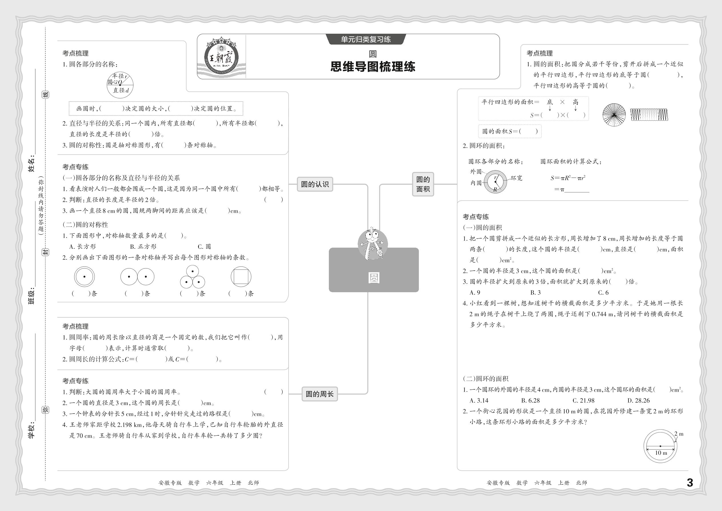2023秋上册六年级数学北师版 期末过课本·单元归类复习练——圆【1】
