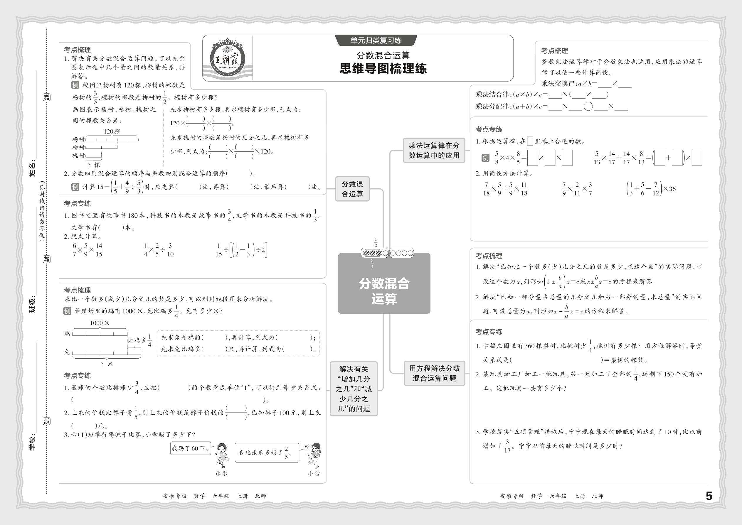 2023秋上册六年级数学北师版 期末过课本·单元归类复习练——分数混合运算【2】