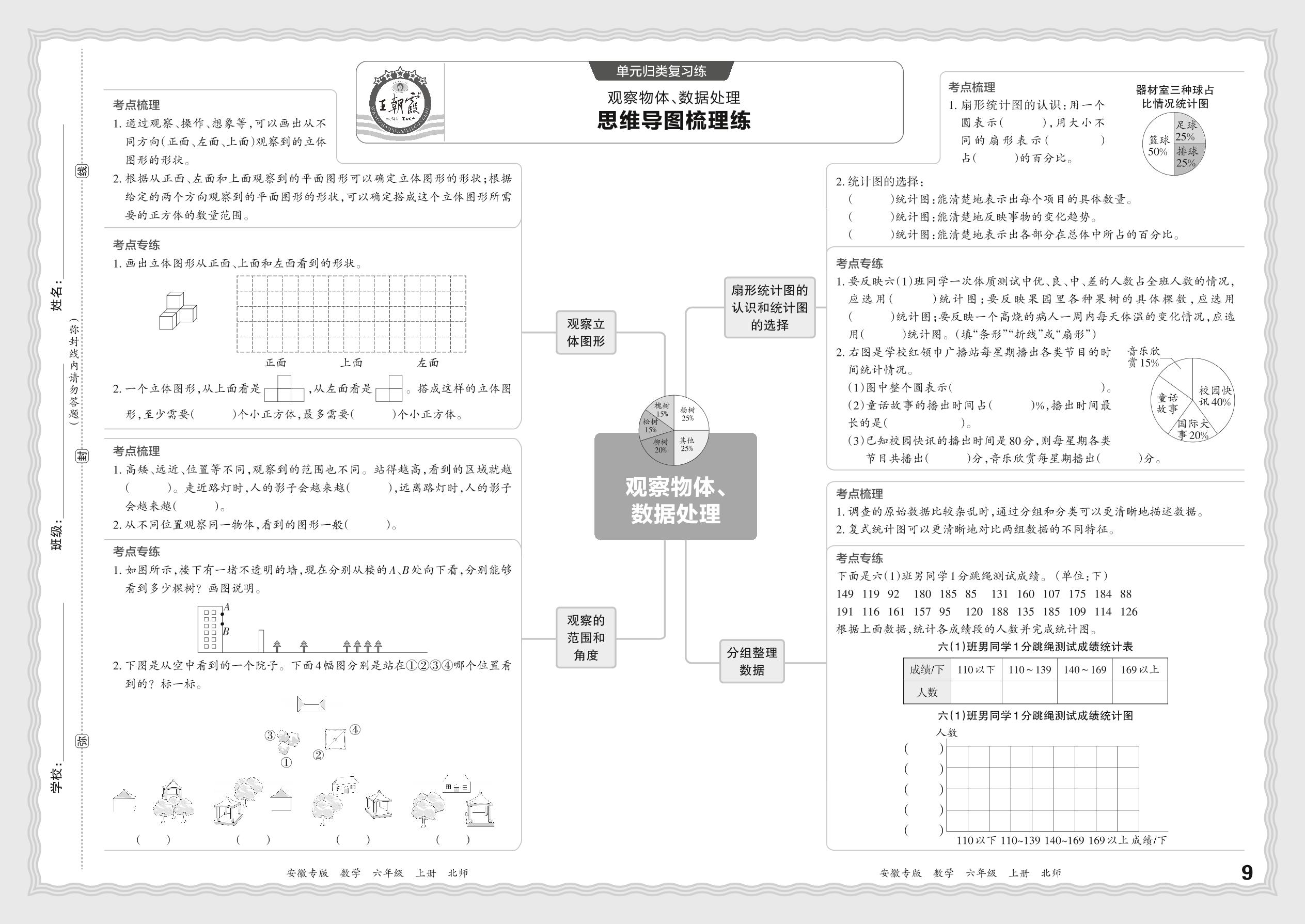 2023秋上册六年级数学北师版 期末过课本·单元归类复习练——观察物体、数据处理【4】
