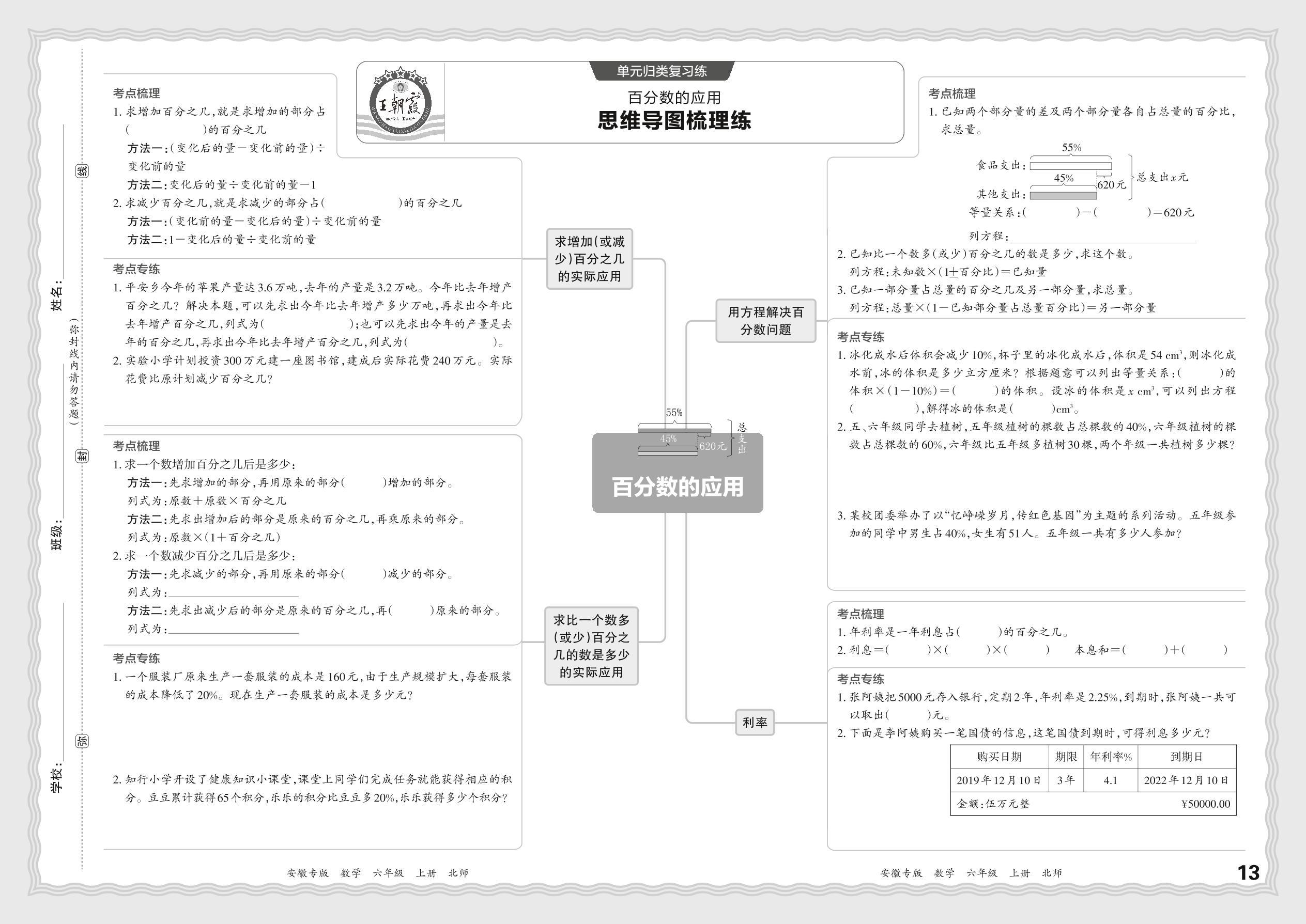 2023秋上册六年级数学北师版 期末过课本·单元归类复习练——百分数的应用【6】