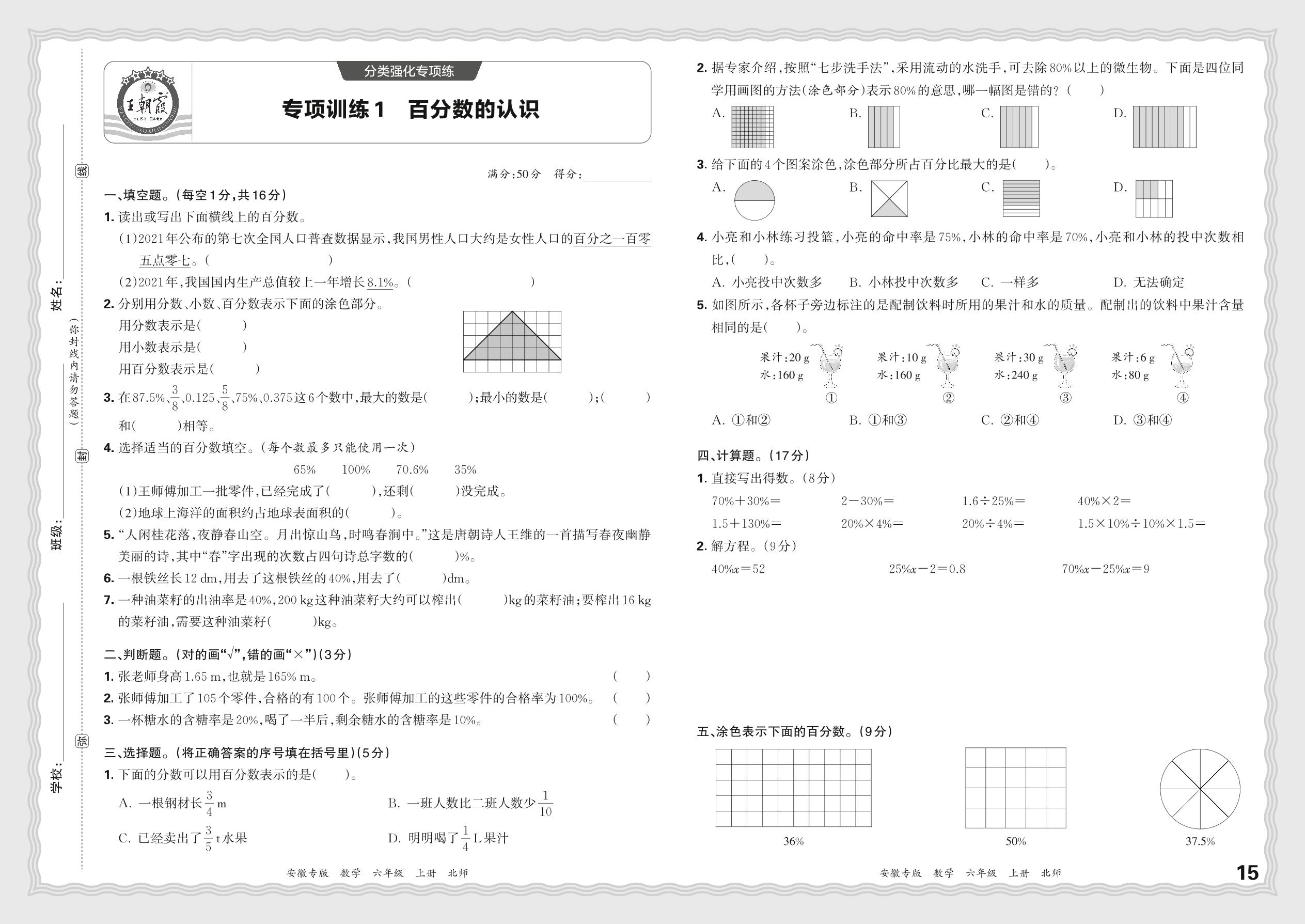 2023秋上册六年级数学北师版 期末专项·百分数的认识【1】