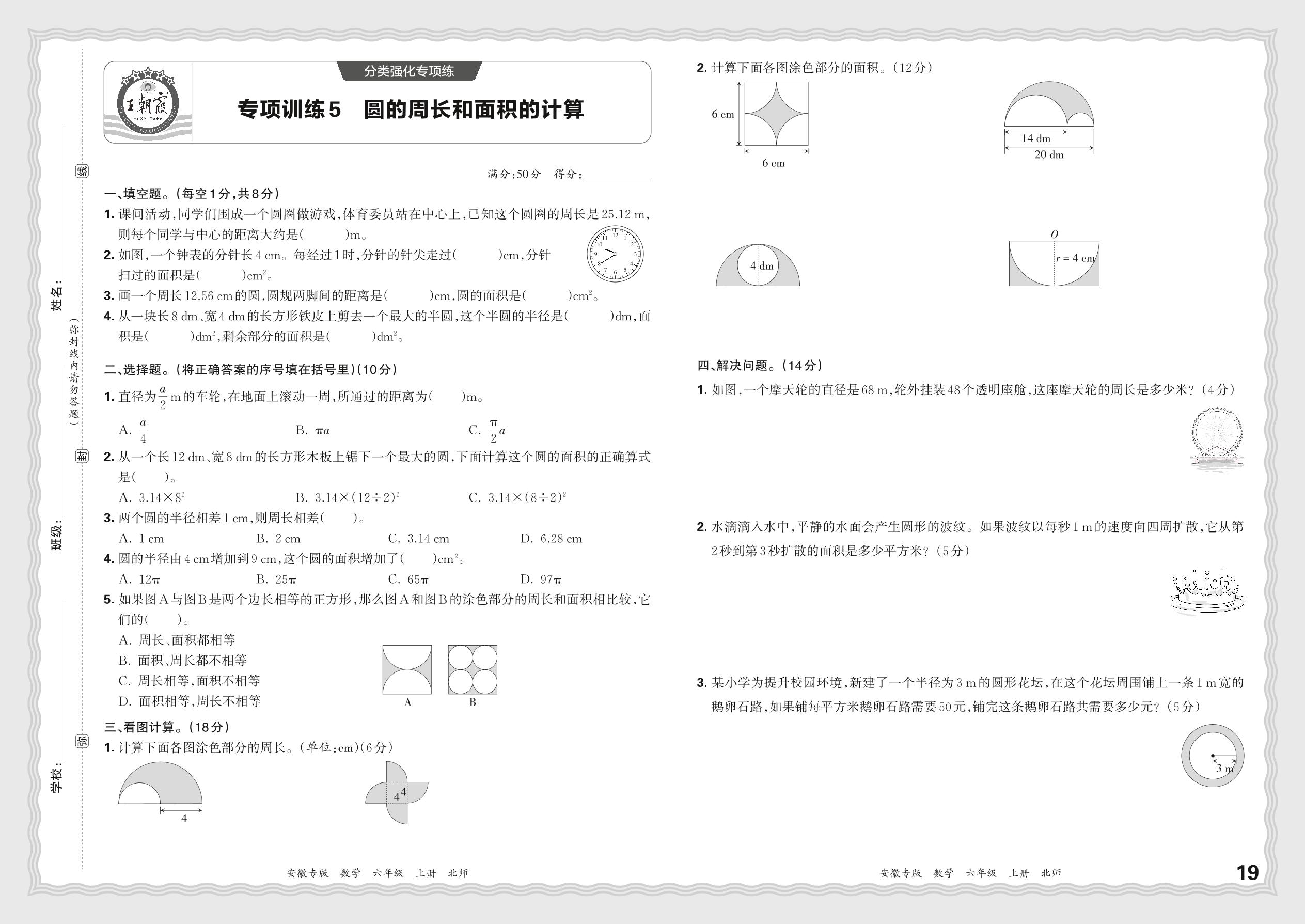 2023秋上册六年级数学北师版 期末专项·圆的周长和面积的计算【5】